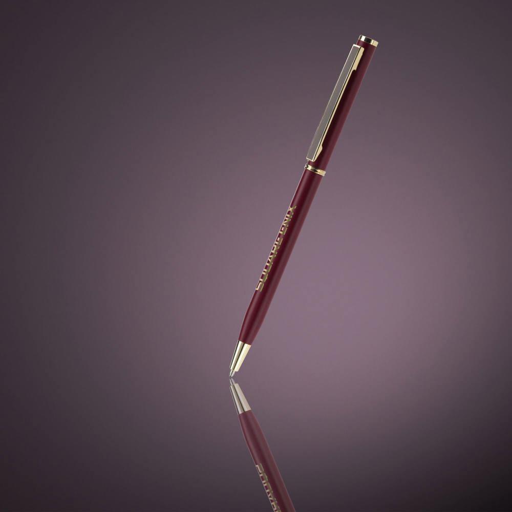 Ontdek de Balpen Slim metaal, een dunne en elegante metalen balpen met een diameter van slechts 8 mm. Perfect als gepersonaliseerd relatiegeschenk voor jouw events of marketingacties. Je laat hem eenvoudig personaliseren met lasergravure in messing of enkelnaamsgravure, zodat jouw logo of naam er professioneel op prijkt.