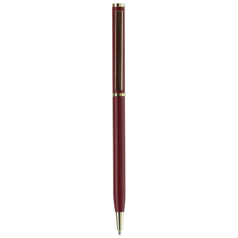 Dunne metalen balpen. Mat gekleurd met goudkleurige delen. Blauwschrijvende metalen vulling. Lasergravering (messing) en enkelnaamsgravering mogelijk.