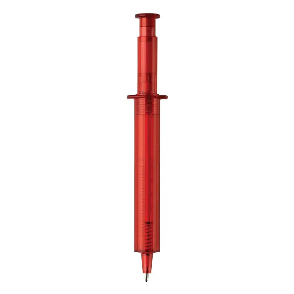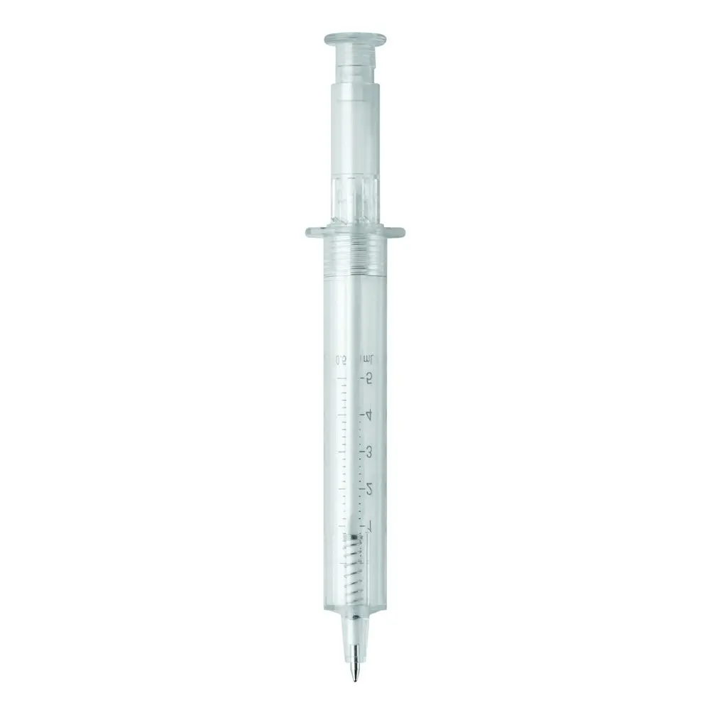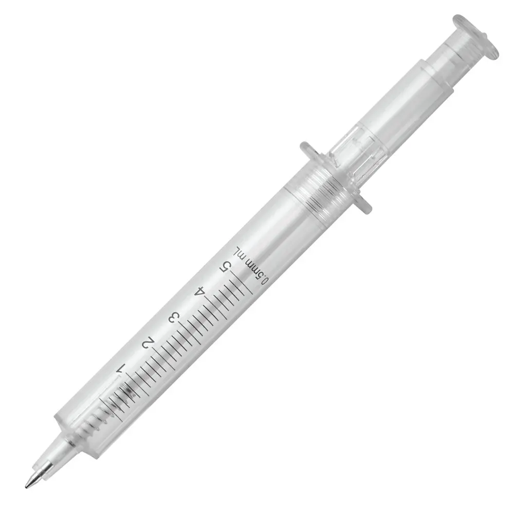Ontdek de injectiespuitpen, een origineel relatiegeschenk dat uw merk een speels medisch accent geeft. Deze pen in de vorm van een injectiespuit is ideaal voor personalisatie met uw logo, perfect voor marketingacties of events in de zorgsector.