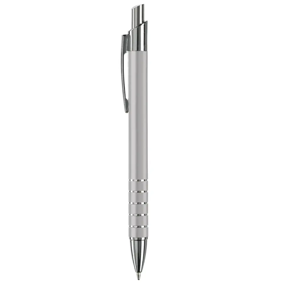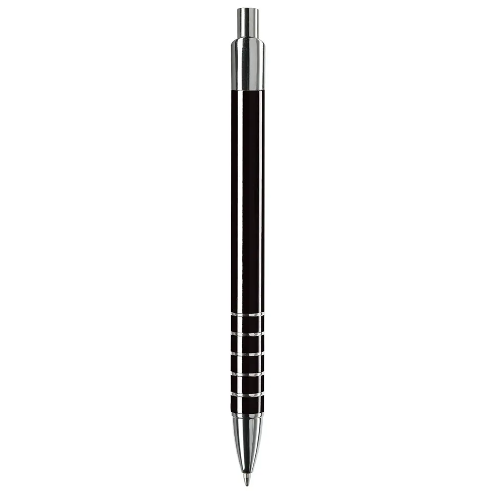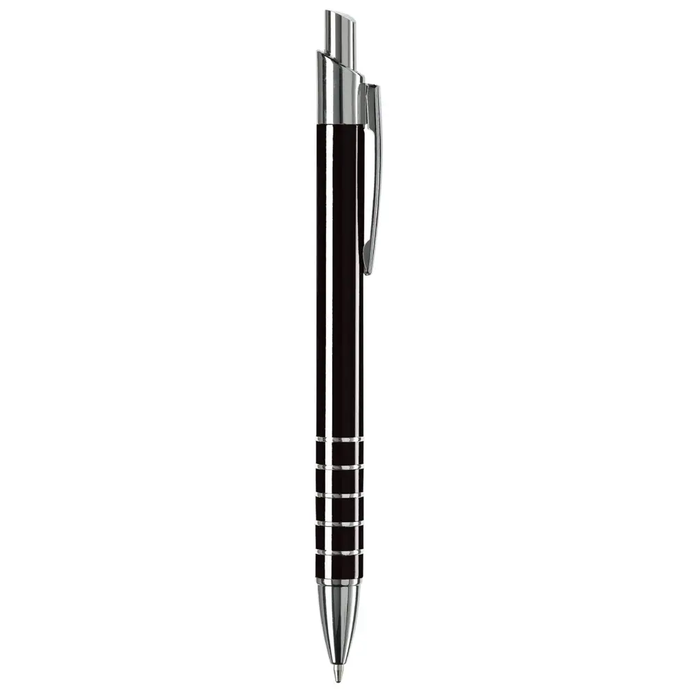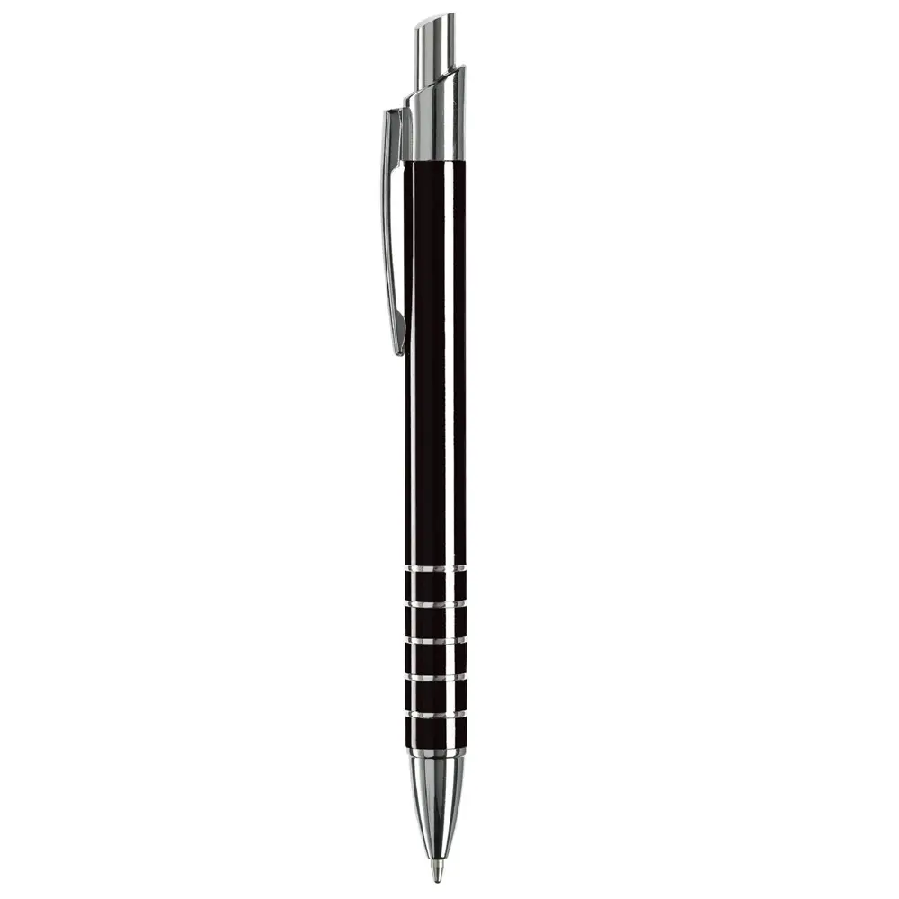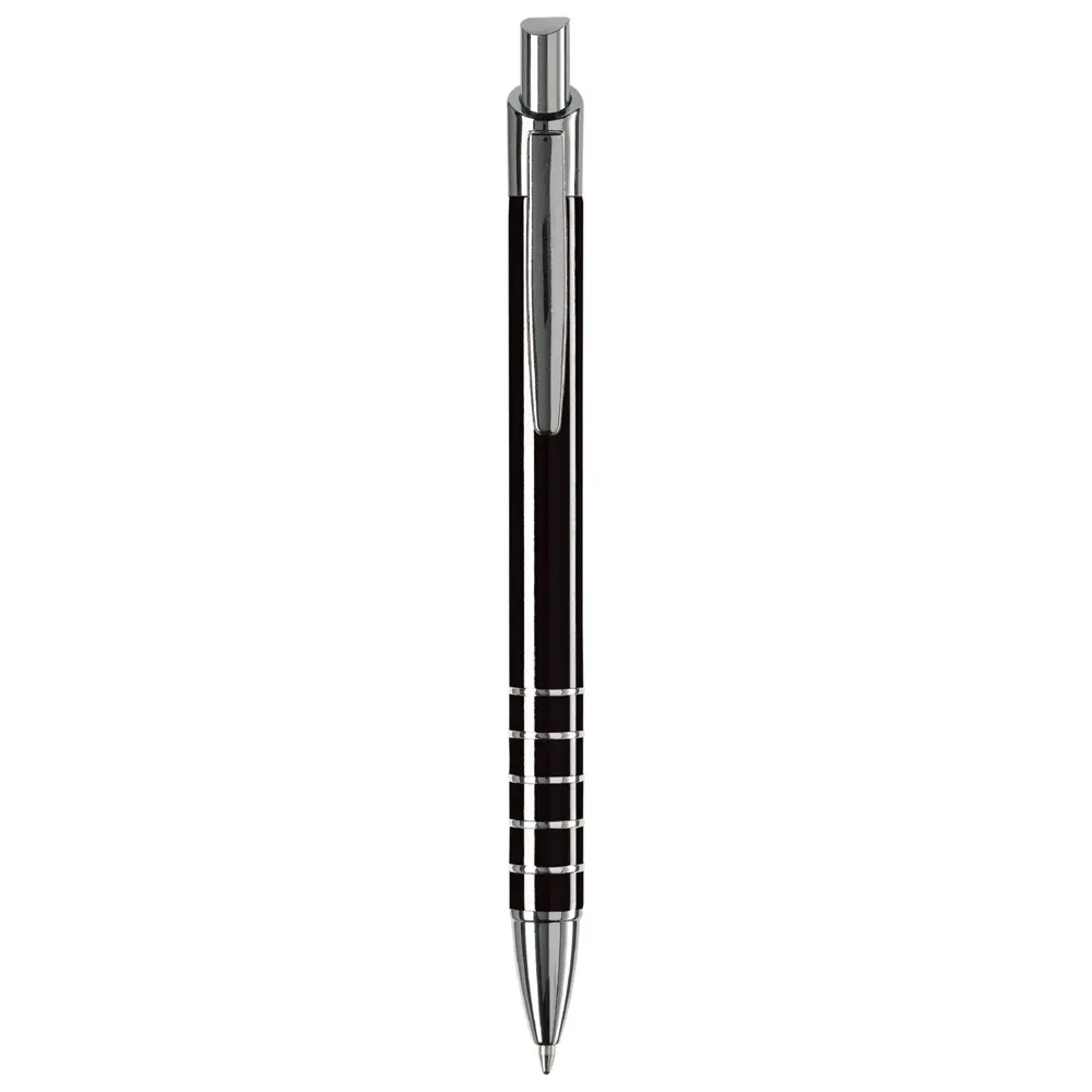 Ontdek de elegante aluminium balpen met een verfijnde afwerking van vijf ringen. Deze pen heeft een diameter van 10 mm voor een comfortabele grip en is uitgerust met een betrouwbare zwartschrijvende kunststof vulling. Het strakke metaalontwerp straalt professionaliteit uit en past perfect bij zakelijke gelegenheden.