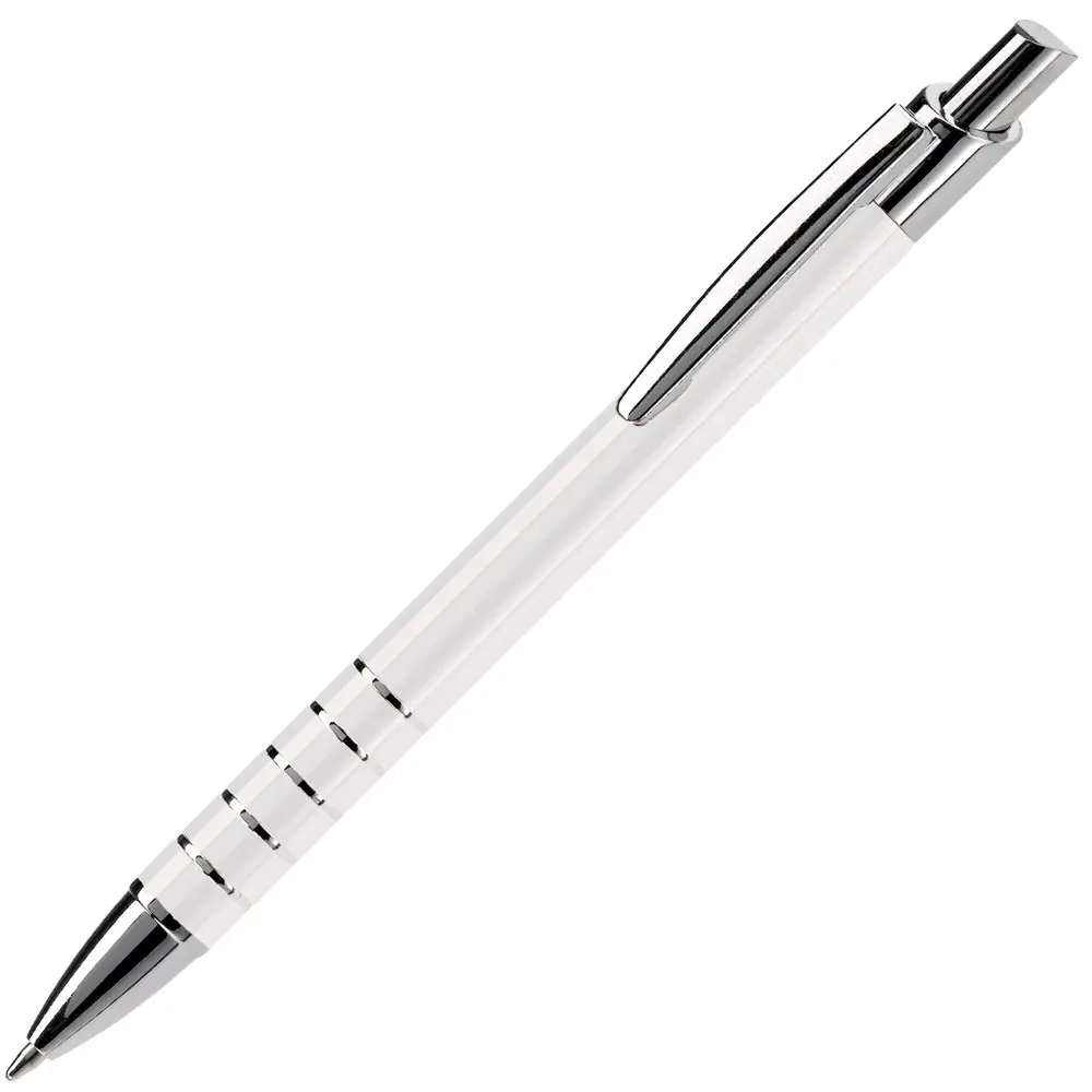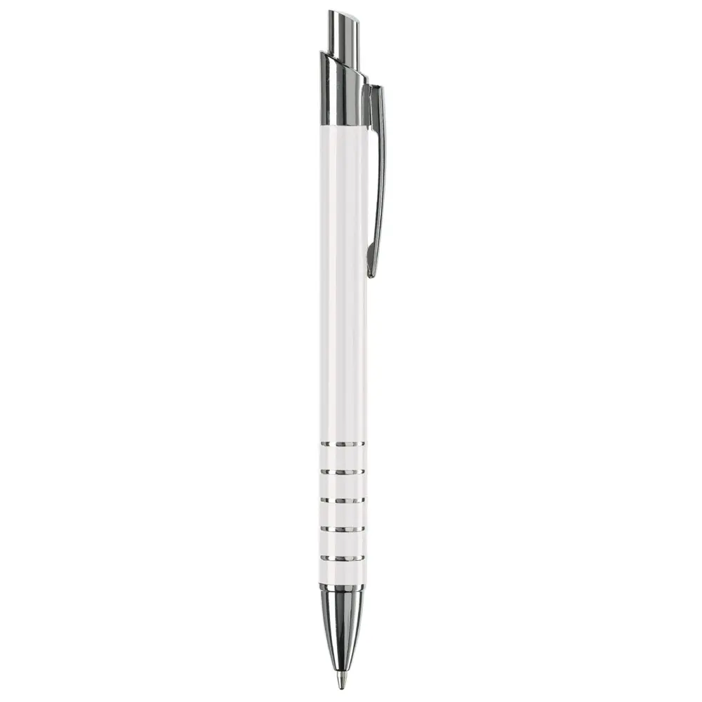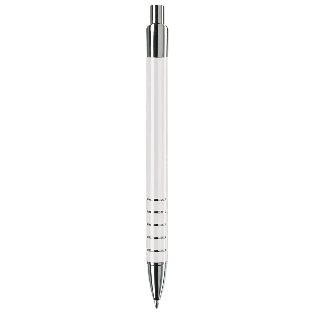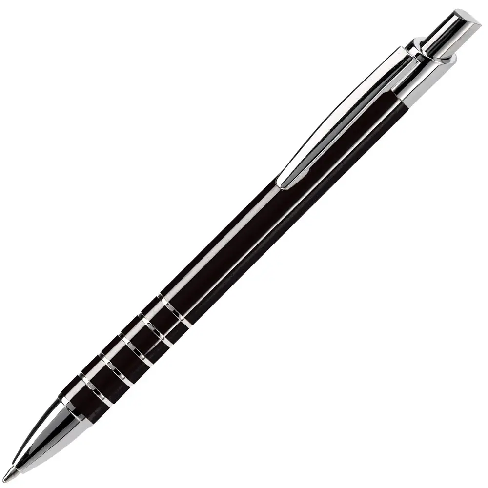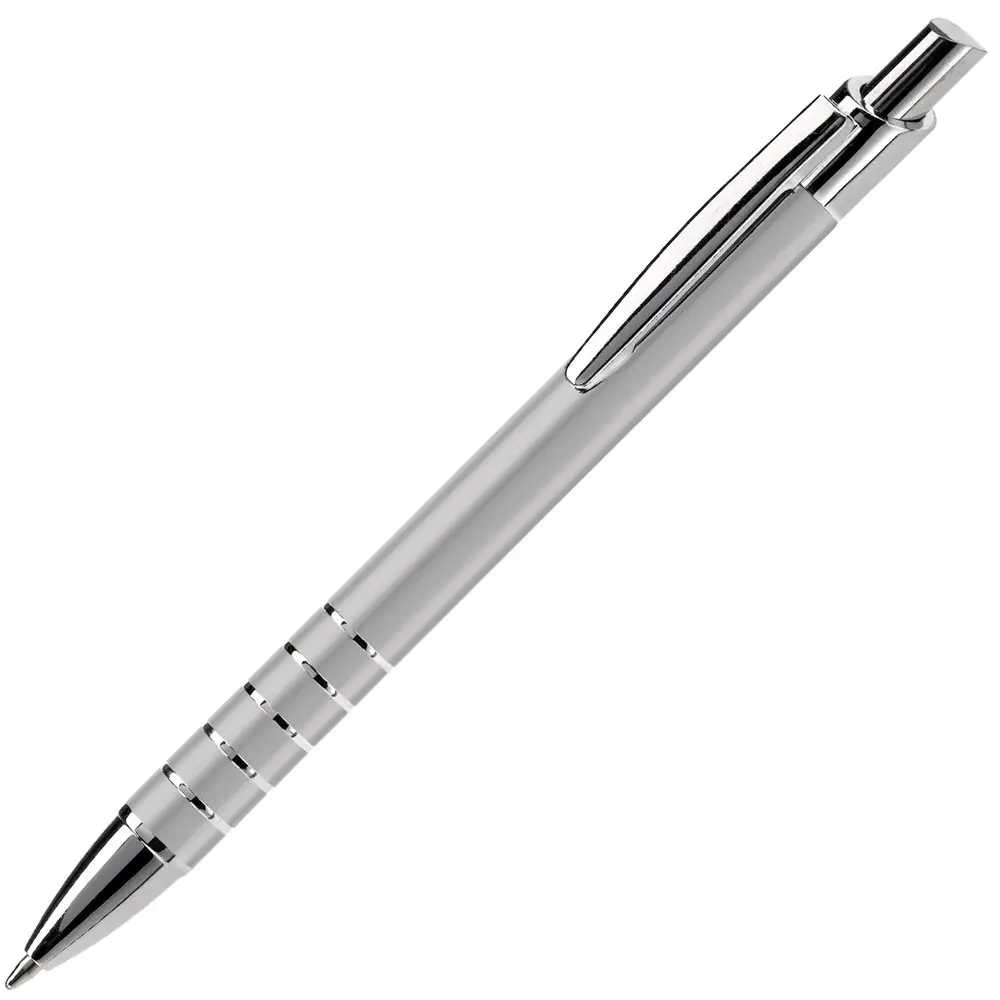 Ontdek de elegante aluminium balpen met een verfijnde afwerking van vijf ringen. Deze pen heeft een diameter van 10 mm voor een comfortabele grip en is uitgerust met een betrouwbare zwartschrijvende kunststof vulling. Het strakke metaalontwerp straalt professionaliteit uit en past perfect bij zakelijke gelegenheden.