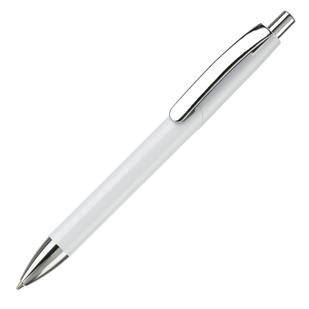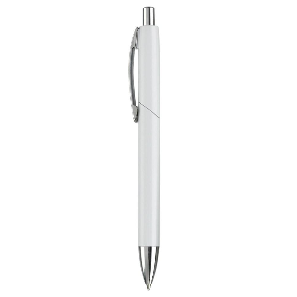Ontdek deze robuuste kunststof balpen met diameter van 14 mm voor een comfortabele grip. De blauwschrijvende jumbo vulling zorgt voor langdurig en vloeiend schrijfplezier, ideaal voor dagelijks gebruik. De metalen clip en gemetalliseerde drukknop en onderkant geven een premium uitstraling die je merk versterkt.