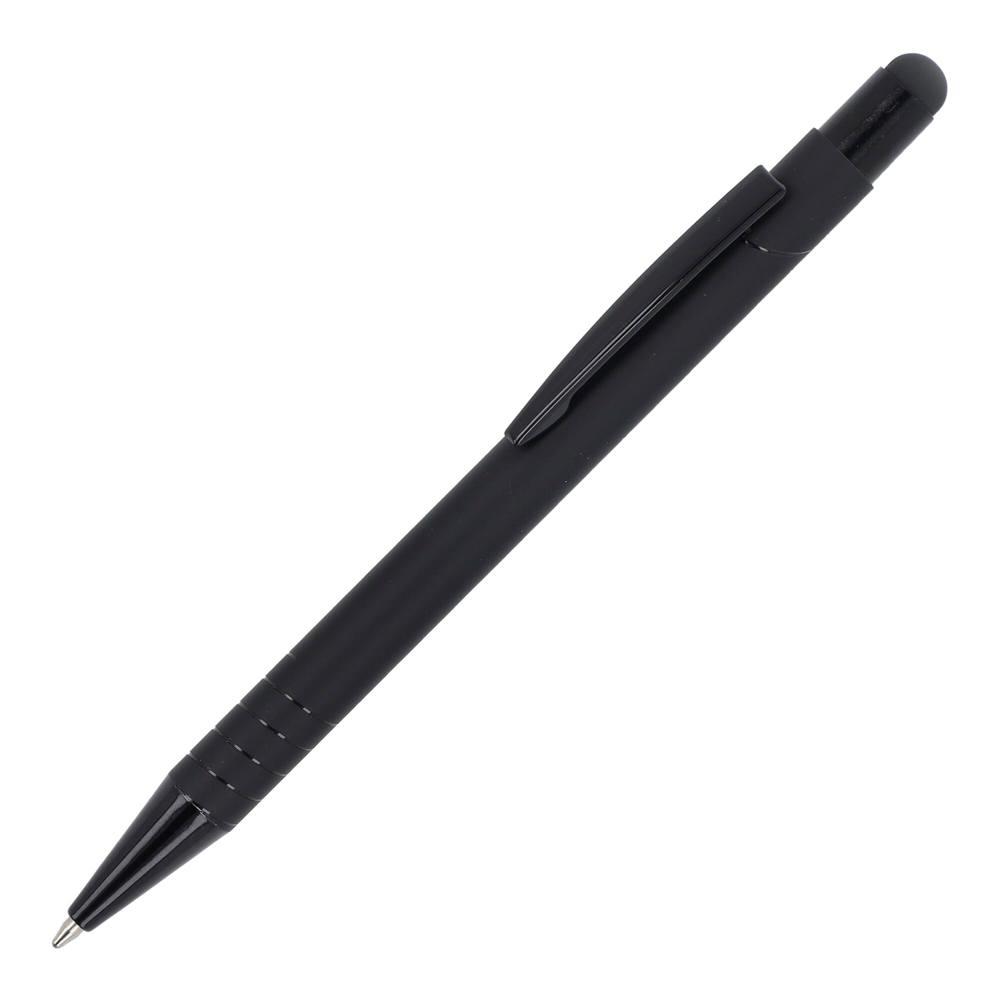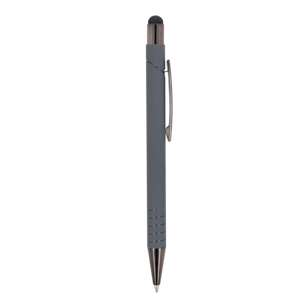 Ontdek deze stijlvolle balpen met metalen clip, stylusfunctie en softtouch-afwerking. De drukknop, clip en ringen hebben een glanzende afwerking die een premium look geeft. Met de jumbo-vulling schrijf je langdurig en vloeiend.
