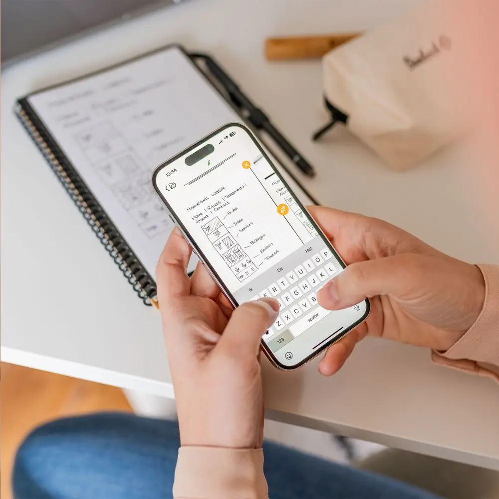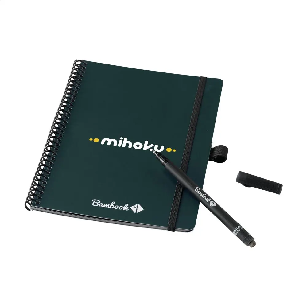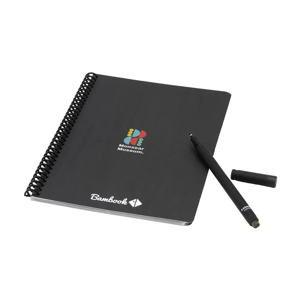 Schrijf eenvoudig met de meegeleverde speciale marker op de whiteboard-achtige pagina's. Scan uw notities via de Bambook-app om ze digitaal te bewaren, en veeg de pagina's schoon met een vochtig doekje voor onmiddellijk hergebruik. Deze herbruikbare eigenschap bespaart papier en vermindert afval, wat uw bedrijf positioneert als milieubewust en innovatief.