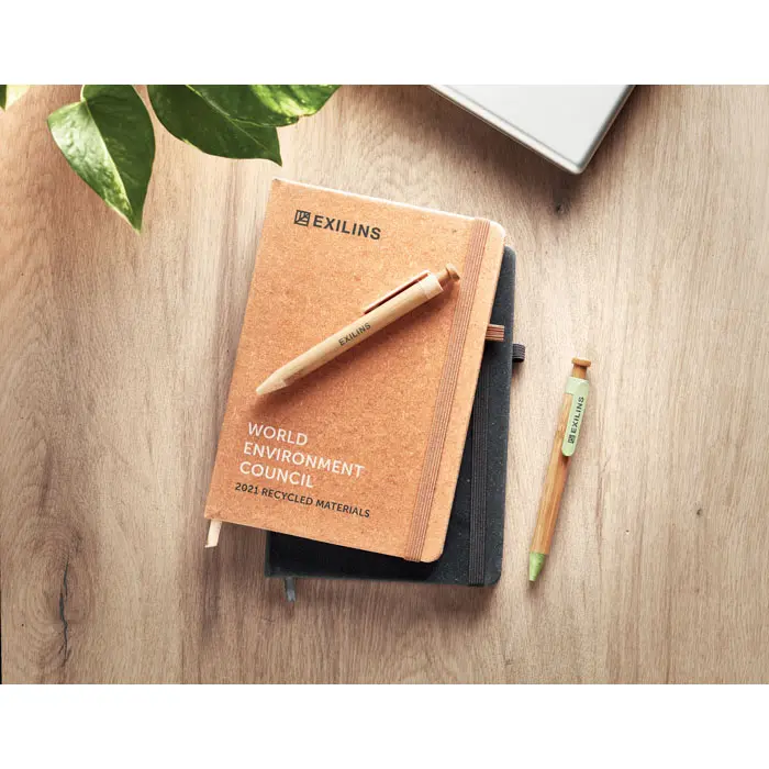 Kies voor dit notitieboek als gepersonaliseerd relatiegeschenk met logobedrukking om uw merk zichtbaar te maken bij uw klanten. Het biedt praktische waarde: uw relaties noteren ideeën of notities in een product dat uw duurzaamheidsvisie weerspiegelt. Dit versterkt uw band met klanten en positioneert uw bedrijf als innovatief en verantwoord. Personaliseer het eenvoudig voor grootschalige uitdelingen tijdens events, en geniet van een professionele uitstraling die herhaalde exposure garandeert.