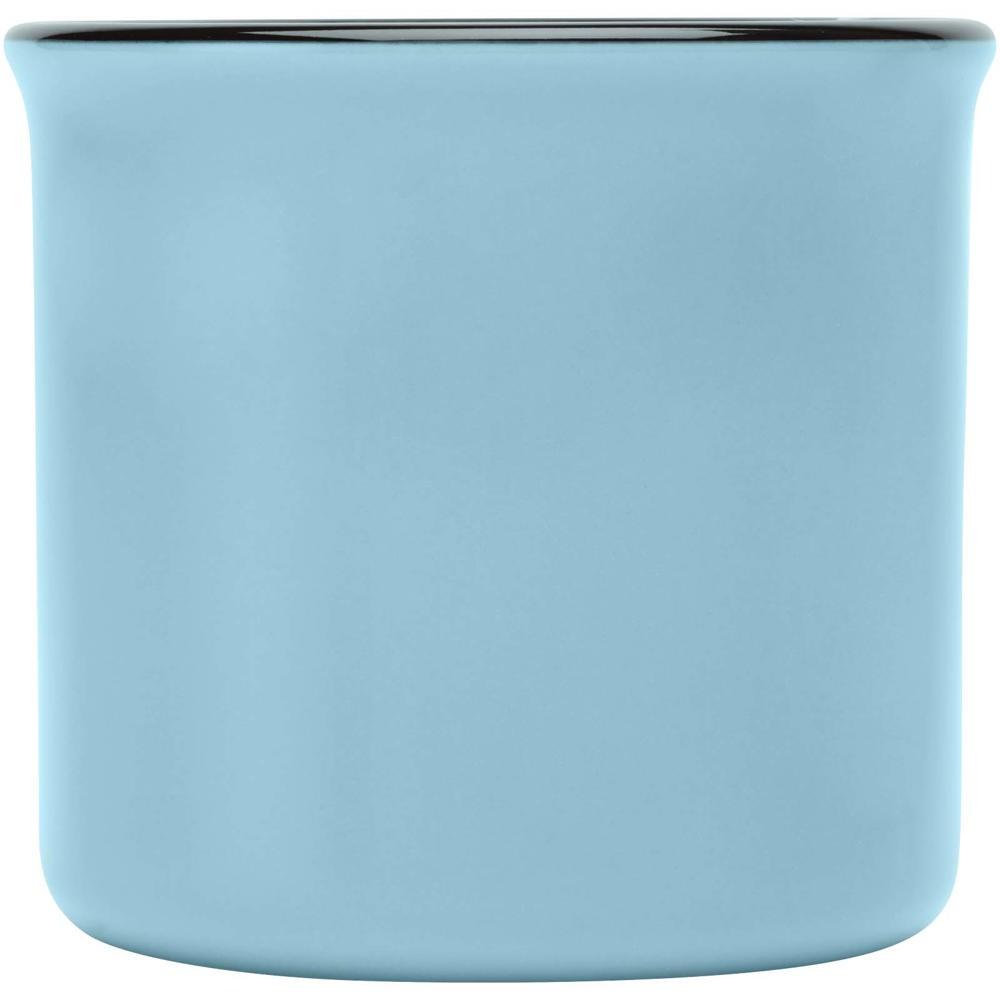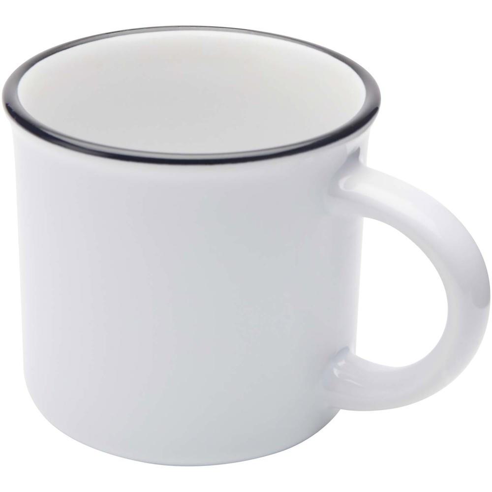 De Bari 240 ml keramische mok met glanzende afwerking heeft een uniek vintage design dat perfect past bij jouw merkimage. Met een inhoud van 240 ml en een diameter van 80 mm is hij ideaal voor je dagelijkse koffie of thee, en vaatwasserbestendig voor langdurig gebruik.