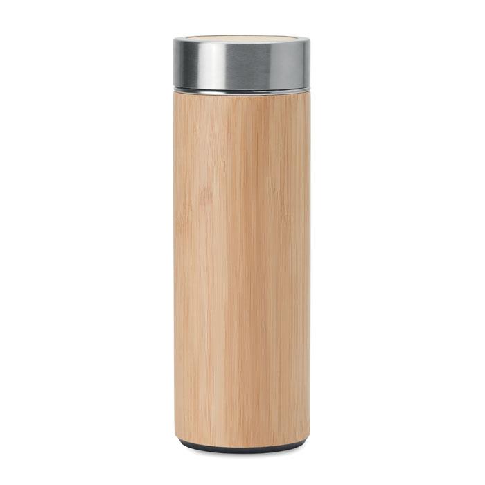 Dubbelwandige roestvrijstalen fles met bamboe afwerking en compartiment voor thee. Inhoud: 400 ml. Bamboe is een natuurlijk product, de kleur per artikel kan verschillen. FSC®-certified | FSC 100%, N5.7, FSC-C213206