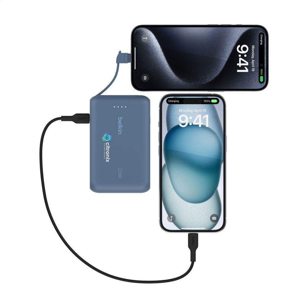 Ontdek deze duurzame powerbank van Belkin als ideaal gepersonaliseerd relatiegeschenk voor jouw events en marketingacties. Je klanten laden moeiteloos hun apparaten op dankzij de geïntegreerde USB-C-kabel en extra poort, met snelladen tot 20W voor twee toestellen tegelijk.