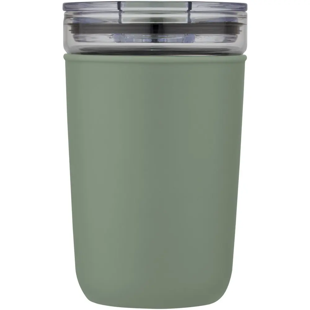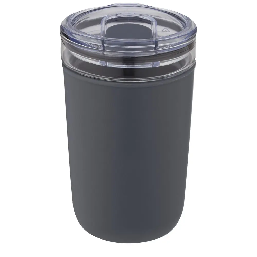 De Bello 420 ml glazen beker met beschermende hoes van gerecycled plastic is het ideale relatiegeschenk voor uw marketingcampagnes of events. Gemaakt van 100% duurzaam borosilicaatglas, behoudt deze beker de versheid van uw drank longer en is volledig vrij van schadelijke stoffen zoals BPA, ftalaten en andere chemicaliën. Getest en goedgekeurd volgens LFGB en REACH-regelgeving, biedt hij maximale voedselveiligheid.