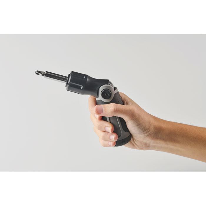 Ontdek deze praktische buigbare schroevendraaierset met stevig ABS handvat en 12 ijzeren bits voor kruiskop, platkop, hex en torx. Je krijgt een veelzijdig tool dat je flexibel buigt voor krappe ruimtes, ideaal als gepersonaliseerd relatiegeschenk met jouw logo.