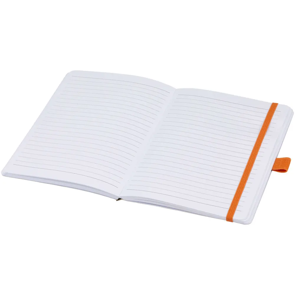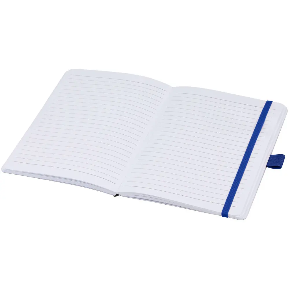 Ontdek ons berk notitieboek, ideaal voor uw marketingcampagnes en evenementen. Dit praktische notitieboek biedt 80 vellen gerecycled gelijnd papier van 70 g/m², met afgeronde hoeken voor extra gebruiksgemak en veiligheid. Het is uitgerust met een elastiek om alles netjes bijeen te houden en een penlus die perfect past bij bijpassende pennen. Dankzij het compacte formaat van 17,8 x 12,7 cm is het gemakkelijk mee te nemen.