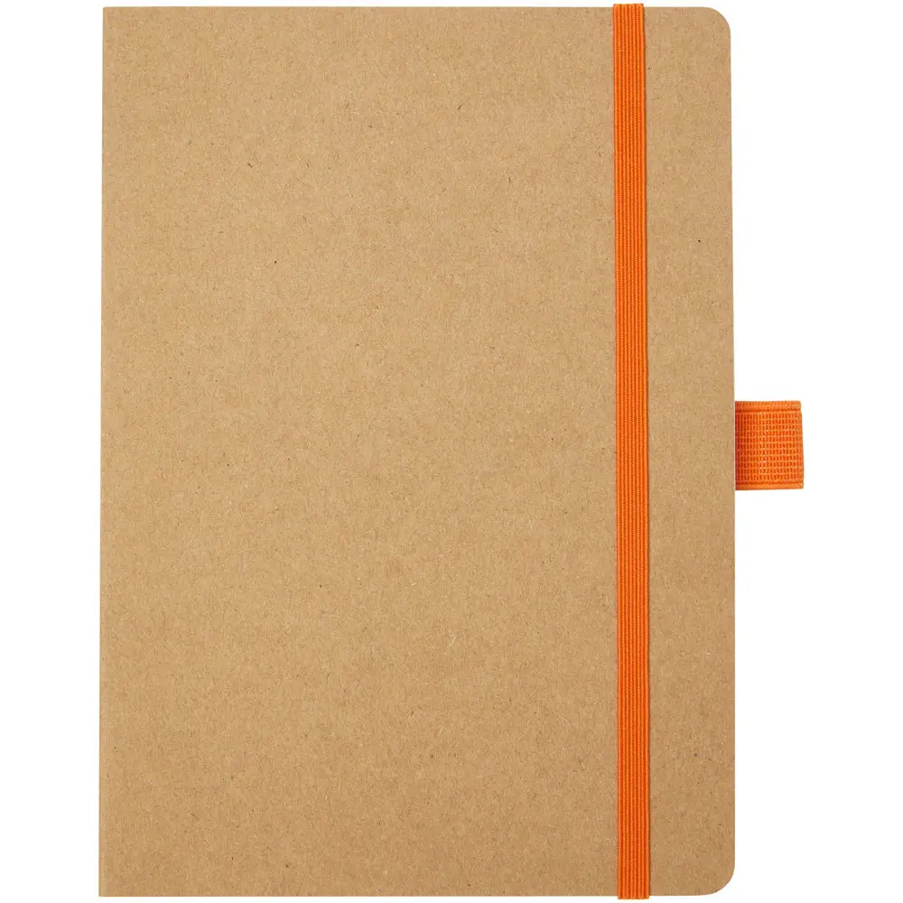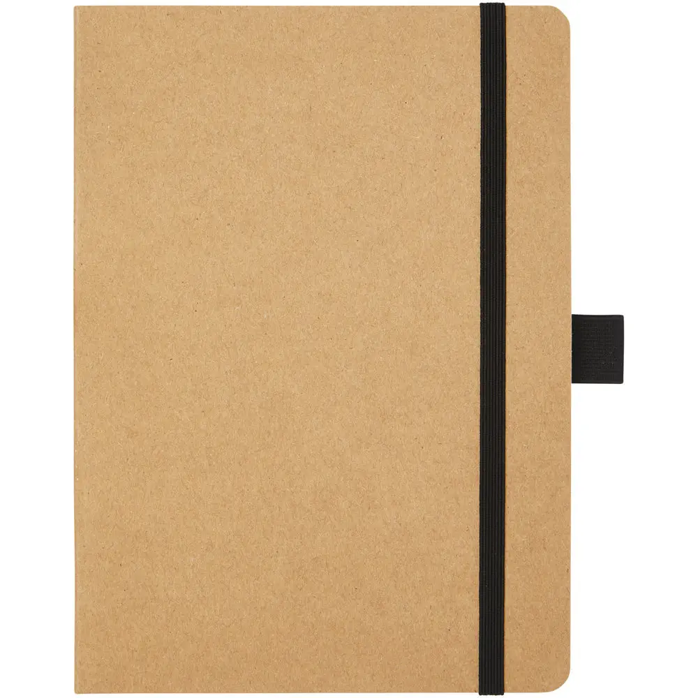 Het Berk notitieboek is een duurzaam relatiegeschenk, ideaal voor uw marketingacties en events. Gemaakt van gerecycled papier met 80 vellen gelijnd papier van 70 g/m², biedt het afgeronde hoeken voor extra comfort, een stevig elastiek om alles veilig bijeen te houden en een praktische penlus voor gemakkelijke notities onderweg. Met afmetingen van 17,8 x 12,7 cm past het perfect in elke tas.