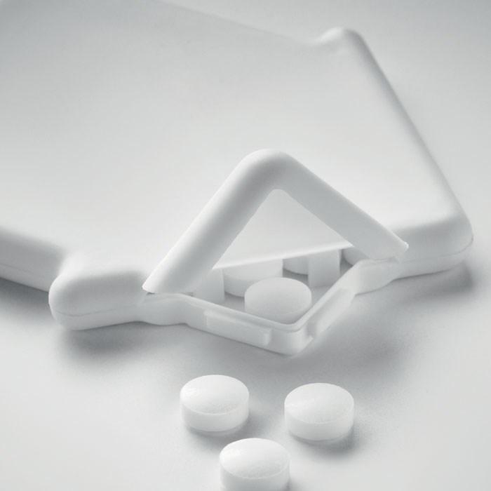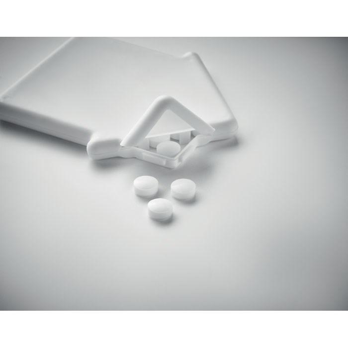 Handige pepermuntdispenser in de vorm van een huis, gevuld met 8 gram frisse pepermuntjes. Personaliseer hem eenvoudig met jouw logo voor een uniek relatiegeschenk.