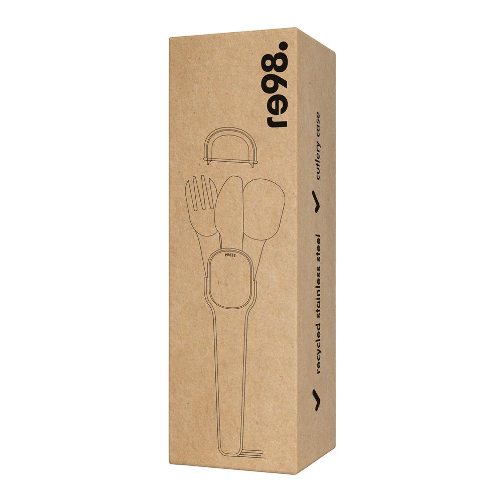 Ontdek de RE98-CUTLA bestekset, bekroond met de prestigieuze Red Dot Award 2025 voor productdesign. Deze stijlvolle set bevat een vork, lepel en mes, plus een handige opbergdoos. Gemaakt van gerecycled roestvrij staal en gerecycled polycarbonaat, zodat je kiest voor duurzaamheid zonder in te boeten op kwaliteit.