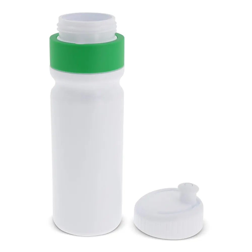 Ontdek onze sportbidon met rand van 750 ml, perfect als gepersonaliseerd relatiegeschenk voor uw marketingacties of events. Gemaakt in Europa uit duurzaam soft-squeeze materiaal, is deze bidon 100% lekvrij en eenvoudig in te knijpen, ideaal voor actieve promoties. Met een diameter van 73 mm biedt hij volop ruimte voor full-colour logobedrukking rondom, zodat uw merk opvalt bij uw klanten. BPA-vrij en robuust, ondersteunt hij uw duurzame bedrijfsvisie en zorgt hij voor blijvende indrukken tijdens uitdelingen.