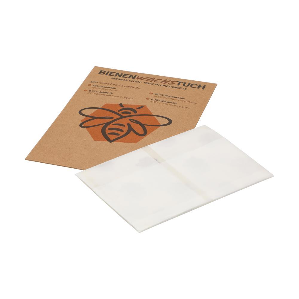 Ontdek de bijenwasdoek "Beeologic", het perfecte milieuvriendelijke alternatief voor vershoud- en aluminiumfolie als gepersonaliseerd relatiegeschenk. Je vormt de doek moeiteloos met je lichaamswarmte om voedsel of schalen af te dekken, waarbij de warmte de omgeslagen randen verzegelt voor een luchtdichte afsluiting.