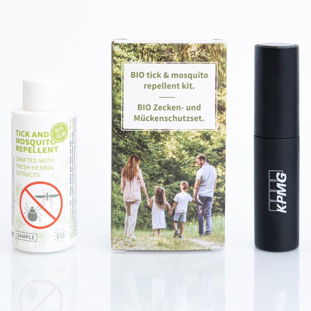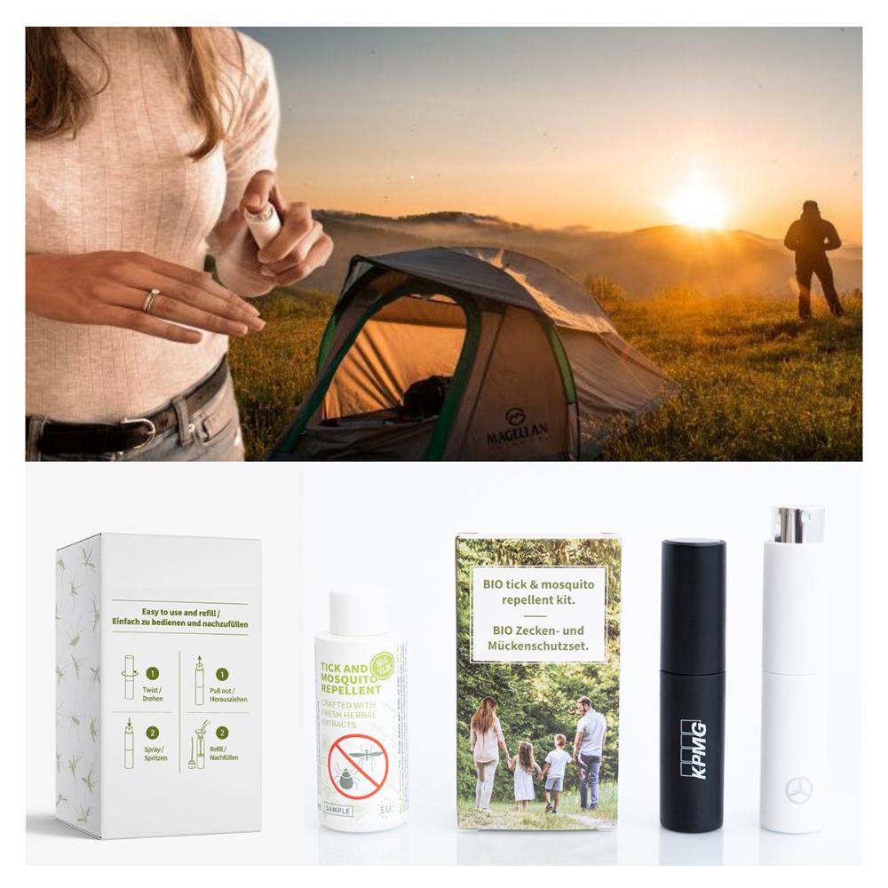 In de zomer is een effectieve bescherming tegen muggen en teken onmisbaar. Deze set is de meest elegante en handige oplossing die in elke broekzak of handtas past. Dankzij het navulbare sprayflesje met jouw merk, blijft het product lang in het dagelijks gebruik van de ontvanger.