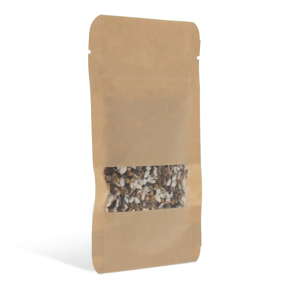 Ontdek de kraft papieren zak met 4 gram droogbloemenzaden, perfect voor het zaaien van bloemen op 2 m² grond. Dit duurzame relatiegeschenk is ideaal voor uw marketingacties en events, waar u het eenvoudig kunt personaliseren met uw logo om uw merk te versterken.