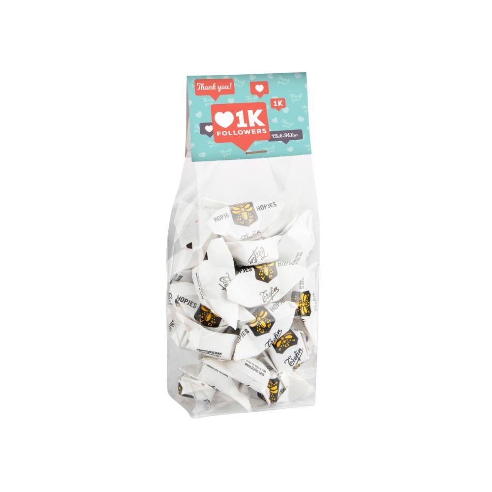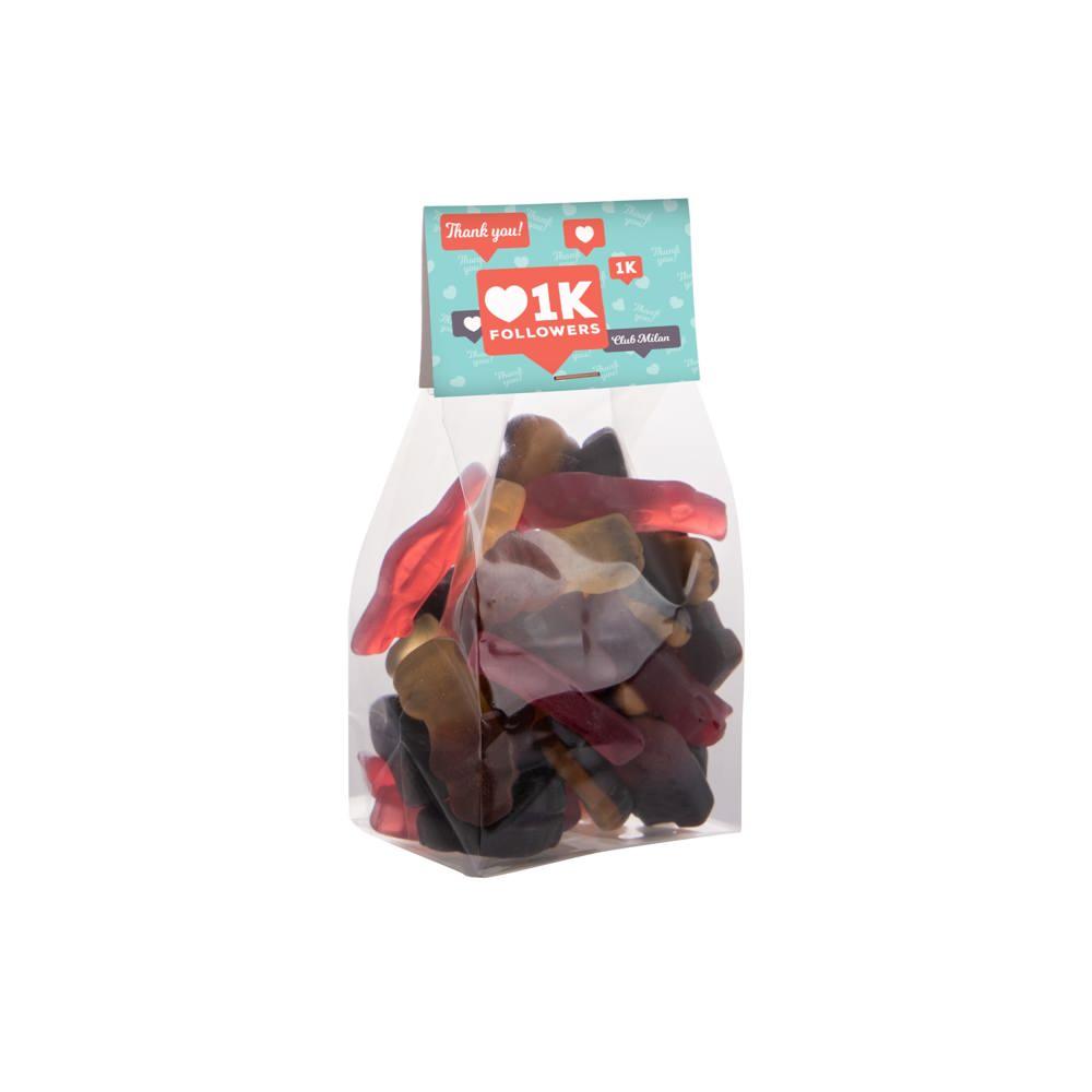 Je deelt niet zomaar snoep uit: je bouwt relaties op met een kwalitatief, royaal gevuld geschenk van 150 gram dat lang blijft plakken – zowel letterlijk als figuurlijk. Perfect voor marketingacties, beurzen of klantrelaties, want het combineert plezier met professionele branding. Bestel in bulk en laat het jouw visitekaartje worden!