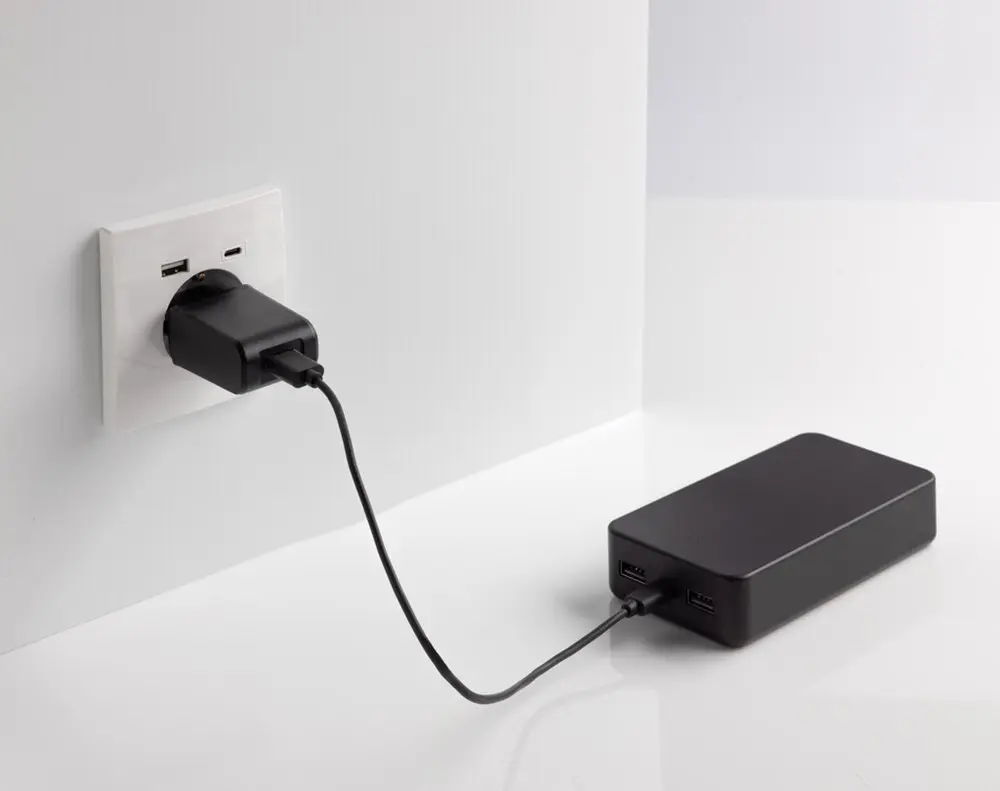 Deze powerbank biedt USB-C input en output, plus twee USB-A poorten, waarmee u drie apparaten gelijktijdig kunt opladen. De specificaties – Type-C input 5V/2.4A, USB-A output 5V/2.4A en Type-C output 5V/2A – garanderen efficiënte en veilige energieoverdracht. Met een duurzame grade A lithium-polymeerbatterij laadt u uw smartphone tot acht keer volledig op, wat ideaal is voor langdurig gebruik tijdens events of reizen.