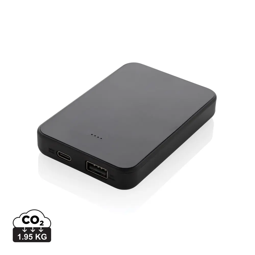 Ontdek hoe deze compacte 5.000 mAh powerbank uw bedrijf ten goede komt als persoonlijk relatiegeschenk. Met USB-C input/output en een extra USB-A-poort laadt u moeiteloos meerdere apparaten op tijdens events of meetings. De behuizing uit RCS-gecertificeerd gerecycled ABS-plastic bevat 25% gerecycled materiaal, wat bijdraagt aan uw duurzame imago.