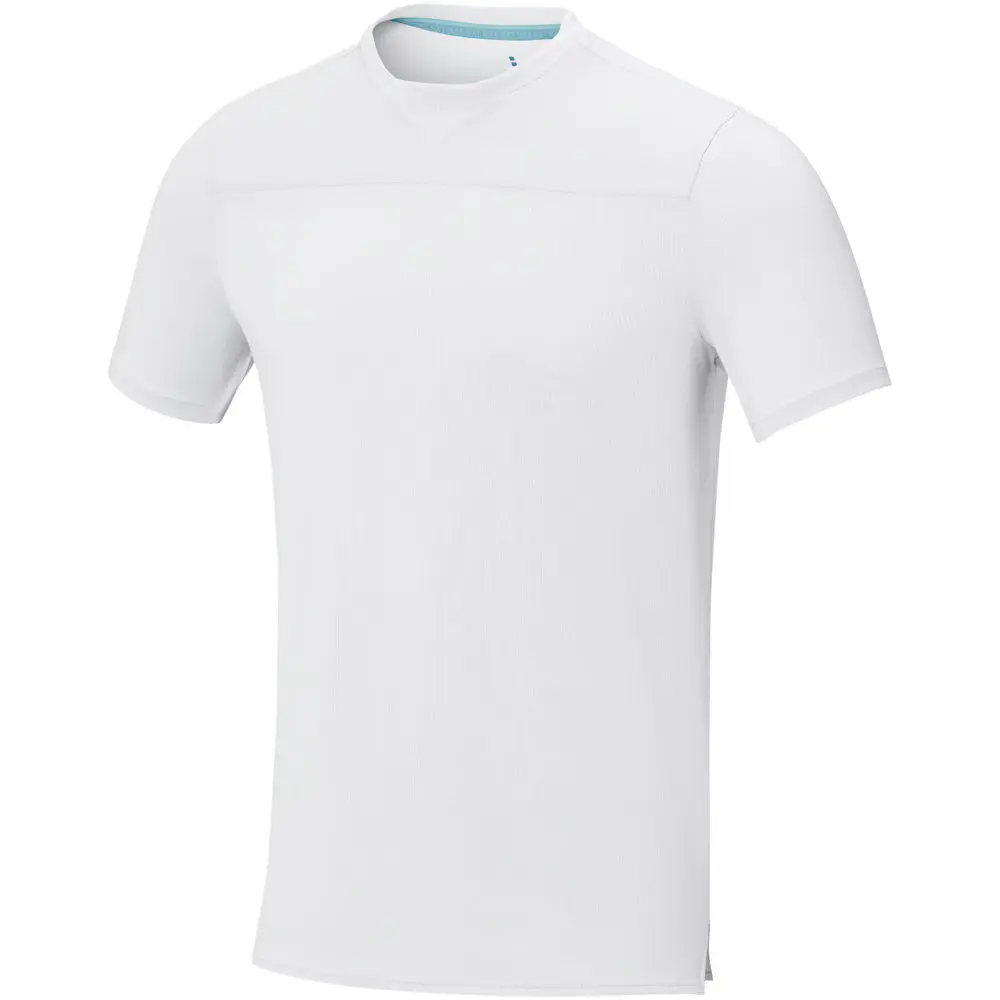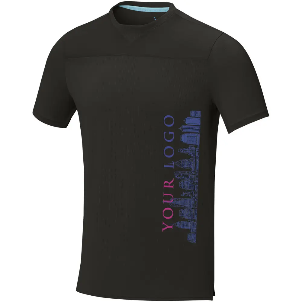 Ontdek het Borax heren t-shirt met korte mouwen en cool fit afwerking, ideaal als gepersonaliseerd relatiegeschenk voor uw bedrijf. Dit t-shirt combineert stijl met optimale prestaties, perfect voor marketingacties of events. Gemaakt van 90% GRS-gecertificeerd gerecycled polyester en 10% elastaan, biedt het een stofgewicht van 160 g/m² voor lichte en soepele draagbaarheid.