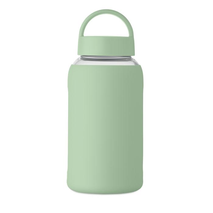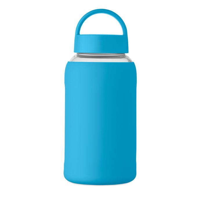 Je klanten waarderen de antislip hoes voor stevige grip en het handige handvat voor makkelijk meenemen. Deze robuuste borosilicaatglas fles promoot jouw merk langdurig als praktisch relatiegeschenk.