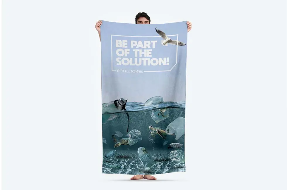 Ontdek onze BottleTowel, een hoogwaardige strandhanddoek die perfect is voor uw marketingacties en events. Met full colour sublimatie kunt u uw logo of boodschap moeiteloos laten bedrukken, ideaal om uw merk te promoten bij klanten en relaties.