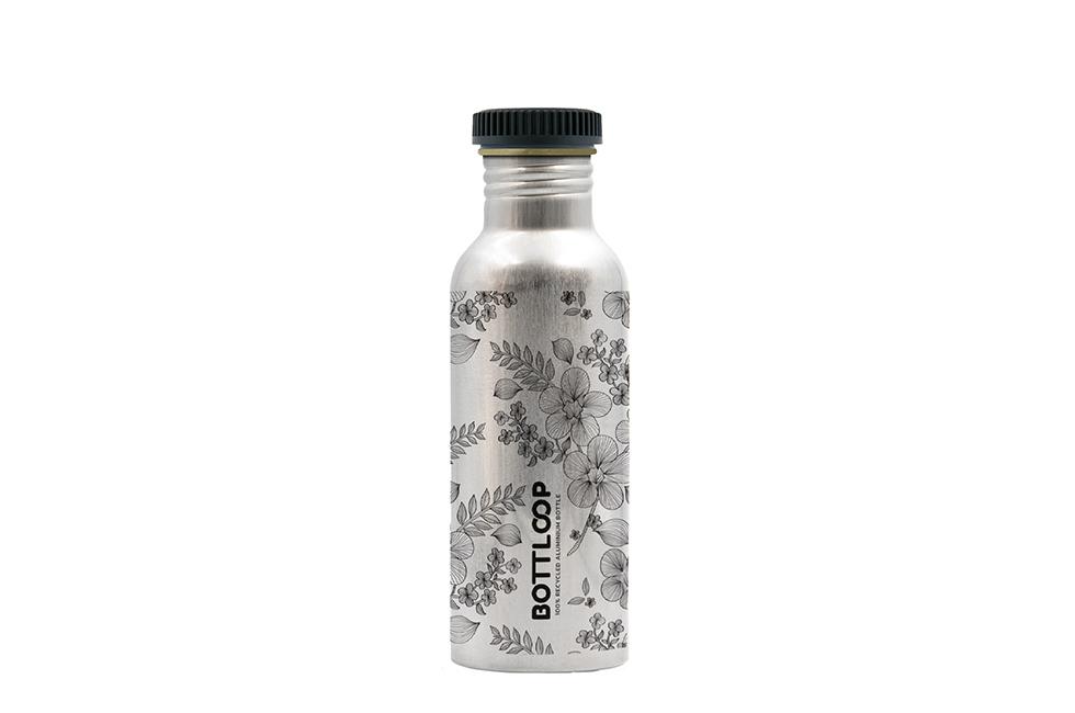 De Bottloop is een enkelwandige fles (0,75L) die gemaakt is van 100% gerecycled PCR (Post-Consumer Recycled) aluminium. Het aluminium wordt gerecycled in Slovenië en werd voorheen gebruikt voor consumentenproducten, auto's en blikjes. In elke PMS kleur leverbaar.