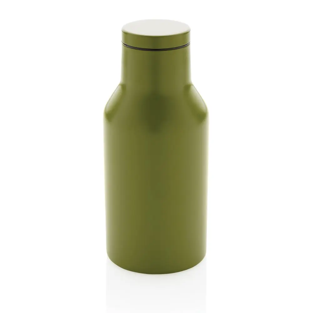 Ontdek onze compacte roestvrijstalen fles, ideaal als gepersonaliseerd relatiegeschenk voor uw bedrijfsevenementen of marketingcampagnes. Gemaakt van RCS-gecertificeerd gerecycled roestvrij staal met 89% gerecycled materiaal, voldoet deze fles aan strenge voedselveiligheidsnormen en is volledig BPA-vrij, vrij van phthalaten en gechloreerde paraffines.