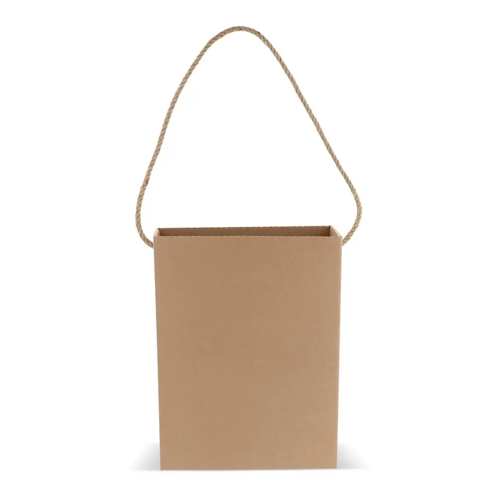 Ontdek onze Box bag, een staand kartonnen geschenktas van 24x8x32 cm, perfect voor uw gepersonaliseerde relatiegeschenken. Deze duurzame tas, gemaakt in Europa, combineert authenticiteit en uniciteit met stevige jute hengsels voor een robuuste draagervaring.