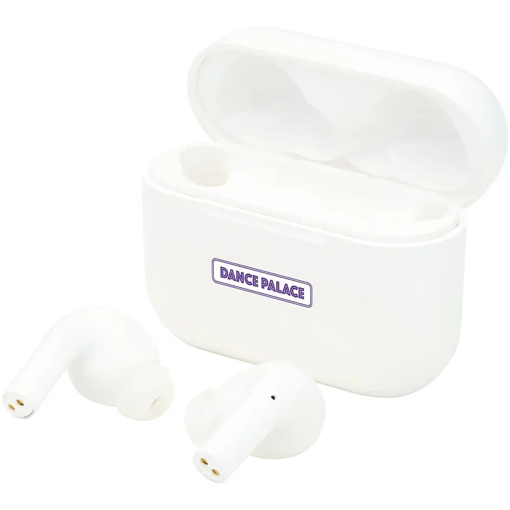 Ontdek de geüpdatete true wireless auto pair oordopjes met superieure geluidskwaliteit en een compacter formaat. Deze oordopjes bieden u een kristalheldere audio-ervaring, ideaal voor uw marketingacties of events. Dankzij het ergonomische ontwerp blijven ze stevig op hun plaats, zelfs tijdens intensieve bewegingen, wat zorgt voor ongehinderde mobiliteit voor uw ontvangers.