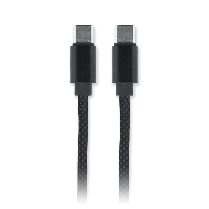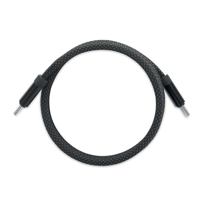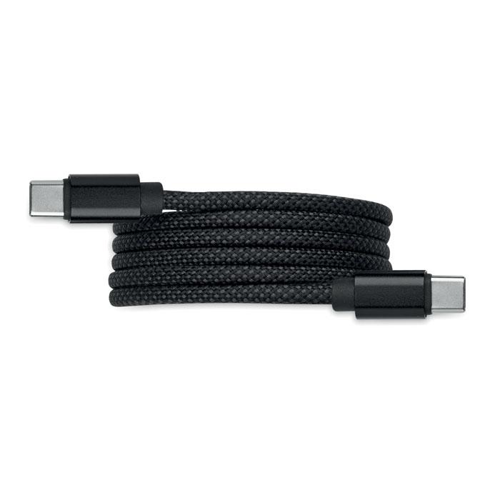 BRAID - magnetische kabel: ontdek deze gevlochten RPET magnetische kabel met logobedrukking, perfect als gepersonaliseerd relatiegeschenk voor jouw events of marketingcampagnes. Gemaakt van GRS-gecertificeerd RPET en aluminium, met USB-C naar USB-C connector voor 60W snelladen en 1 meter lengte.