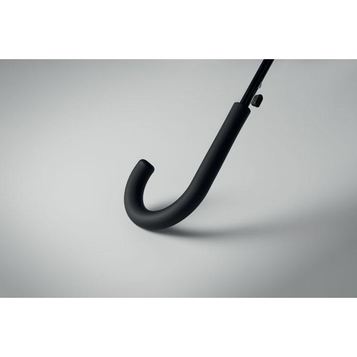 Gemaakt van kwalitatieve 190T pongee stof met plastic tips en een comfortabele rubberen gebogen handgreep, biedt deze paraplu betrouwbare bescherming en een premium uitstraling. De handmatige sluiting houdt alles netjes bij elkaar.