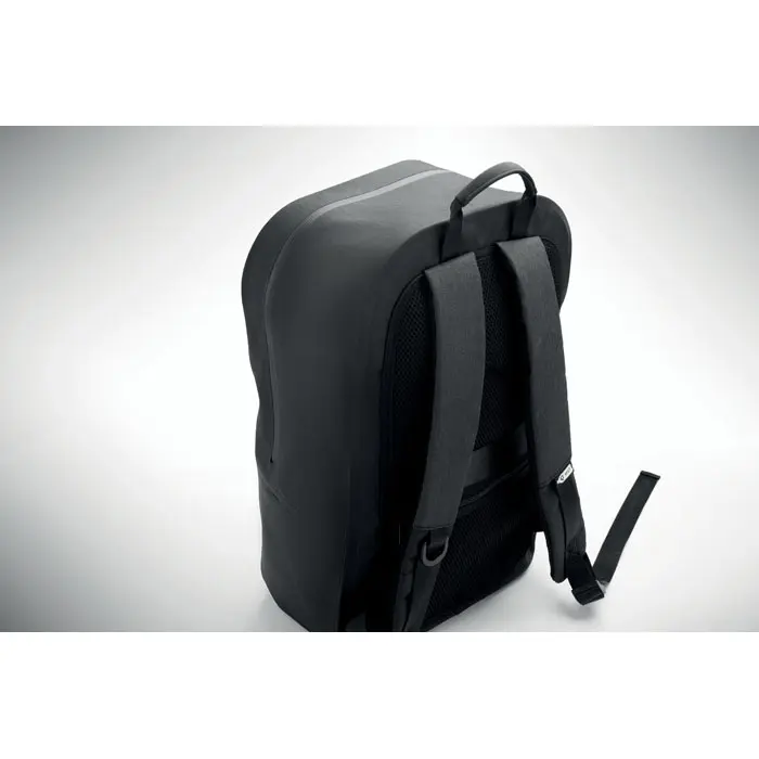 Ontdek onze laptop rugzak gemaakt van 300D RPET polyester, een gerecycled materiaal dat bijdraagt aan een milieubewuste keuze. Met een waterbestendige stof beschermt u belangrijke apparatuur tegen regen en vuil, ideaal voor uw marketingacties of events.