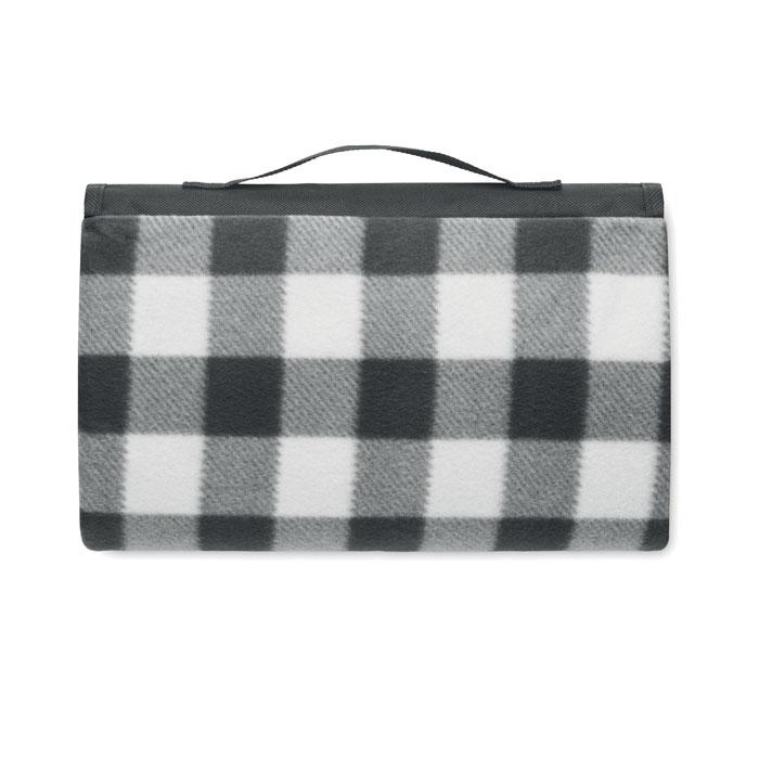Opvouwbaar RPET 150 gr/m² polar fleece picknickkleed met waterbestendige gecoate PEVA achterzijde. Inclusief een voorvak met rits en korte draagriem.