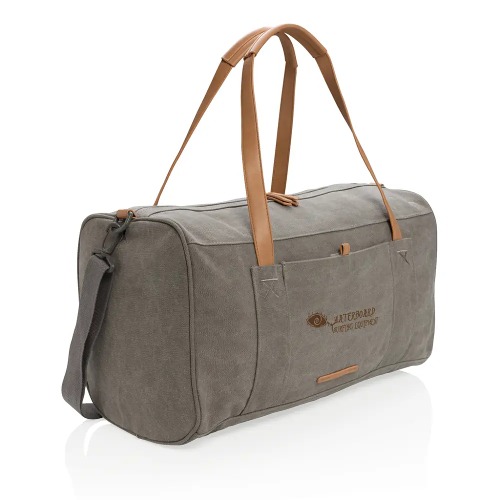 Ontdek hoe deze veelzijdige canvas tas uw merkpromotie versterkt. Neem reis- of werkbenodigdheden moeiteloos mee in dit praktische item, ideaal als relatiegeschenk voor uw klanten tijdens events of als duurzame reclame. De tas biedt een inhoud van 27 liter, perfect voor weekenduitjes of dagelijkse behoeften.