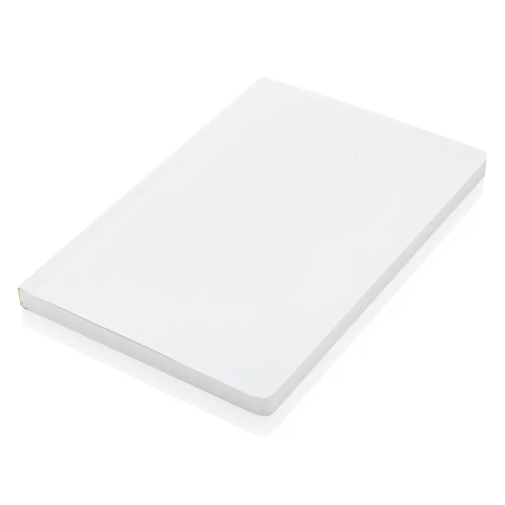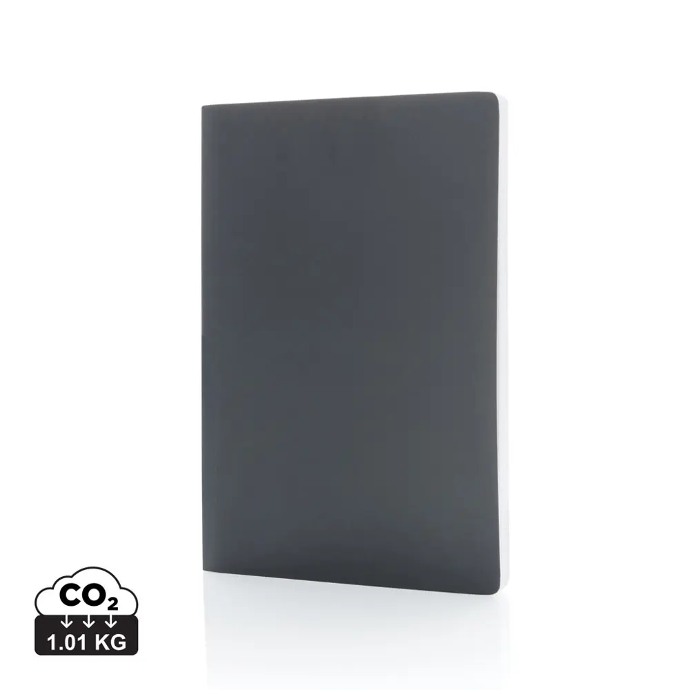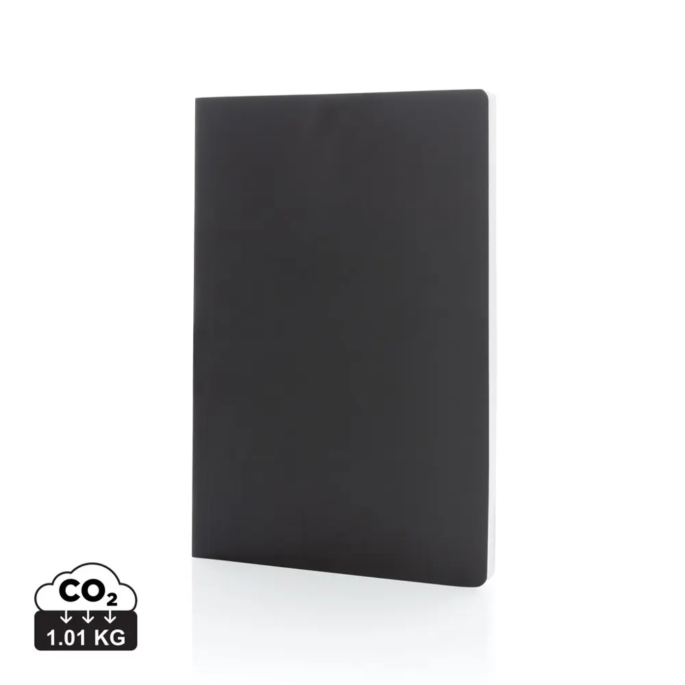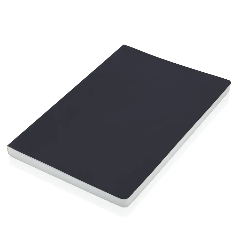 Ontdek ons Impact softcover steenpapier notitieboek in A5-formaat, perfect als gepersonaliseerd relatiegeschenk voor uw bedrijf. Dit duurzame notitieboek gebruikt nul water in de productie en biedt 128 gelinieerde pagina's van 170 g/m² steenpapier, dat zacht en fluweelachtig aanvoelt voor een ultraglad schrijfervaring. De volledige omslag bestaat eveneens uit steenpapier, wat bijdraagt aan een milieuvriendelijke keuze zonder concessies aan kwaliteit.