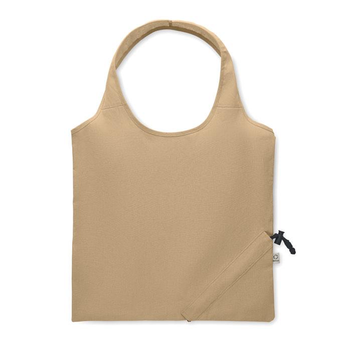 Opvouwbare boodschappentas van gerecycled pre-consumer katoen (70% gerecycled katoen en 30% RPET). 140gr/m². Dit artikel kan krimpen na het bedrukken.
