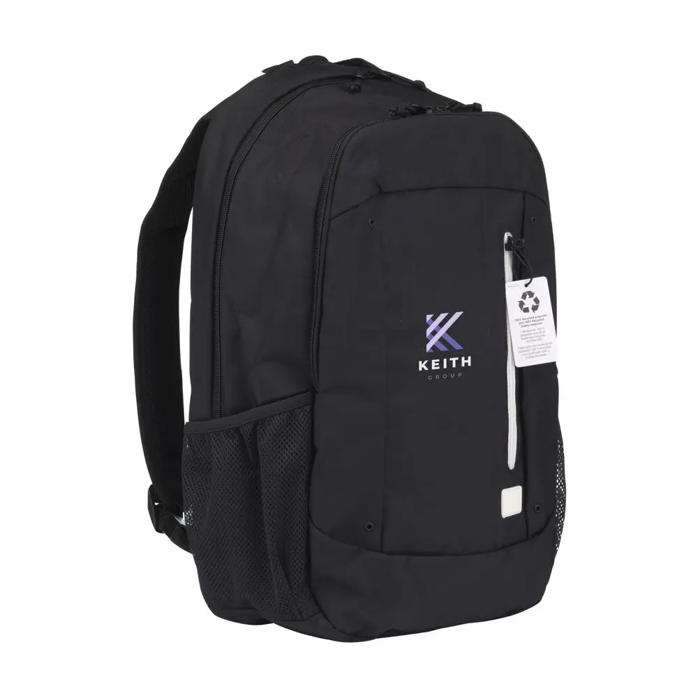Ontdek de Case Logic Jaunt Backpack, een duurzame 15,6 inch laptoprugzak vervaardigd uit 100% gerecycled polyester en gerecyclede dobbymaterialen. Deze rugzak biedt optimale organisatie met een volledig opengeritsbaar hoofdvak voor efficiënt inpakken, een beschermd foamvak voor laptops tot 15,6 inch, en extra compartimenten voor kabels, documenten en accessoires. Het voorvak en zijgaasvakken zorgen voor snelle toegang tot essentials zoals een drinkfles.