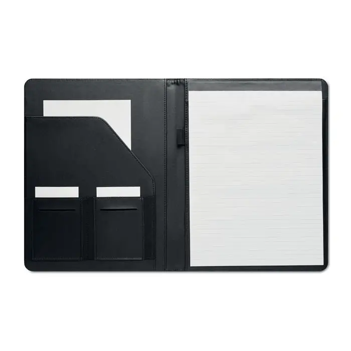 Het A4-formaat past perfect bij standaard documenten, waardoor het essentieel is voor professionals op weg of tijdens bijeenkomsten. De binnenvakken houden papieren en kaarten georganiseerd, terwijl de pennenlus snelle toegang biedt tot schrijfgerei. Dit portfolio ondersteunt uw event organizers bij het uitdelen van branded items die waarde toevoegen aan de ervaring van uw klanten.
