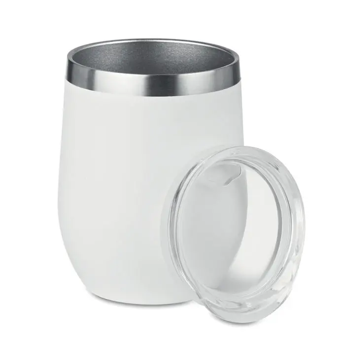 Ontdek hoe deze dubbelwandige roestvrijstalen drinkbeker met deksel uw bedrijf kan versterken. Met een inhoud van 300 ml biedt hij veelzijdigheid: gebruik hem als drinkbeker of als wijnglas. Perfect voor personalisatie met uw logo, ideaal als relatiegeschenk tijdens events of voor langdurige reclame.