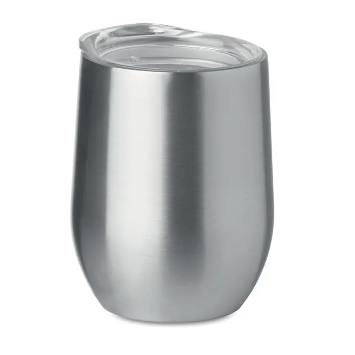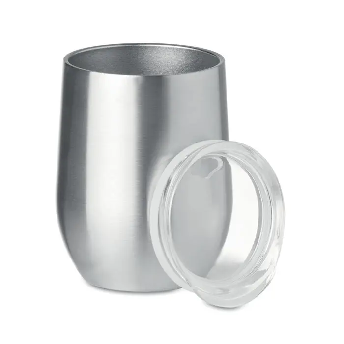 De CHIN CHIN dubbelwandige beker is een veelzijdig relatiegeschenk van roestvrij staal, ideaal voor uw marketingacties en events. Met een inhoud van 300 ml en een handig deksel behoudt deze beker de temperatuur van uw drank langer, terwijl de dubbelwandige constructie condensatie voorkomt en een comfortabele grip biedt. Gebruik hem als drinkbeker of wijnglas voor optimale flexibiliteit.