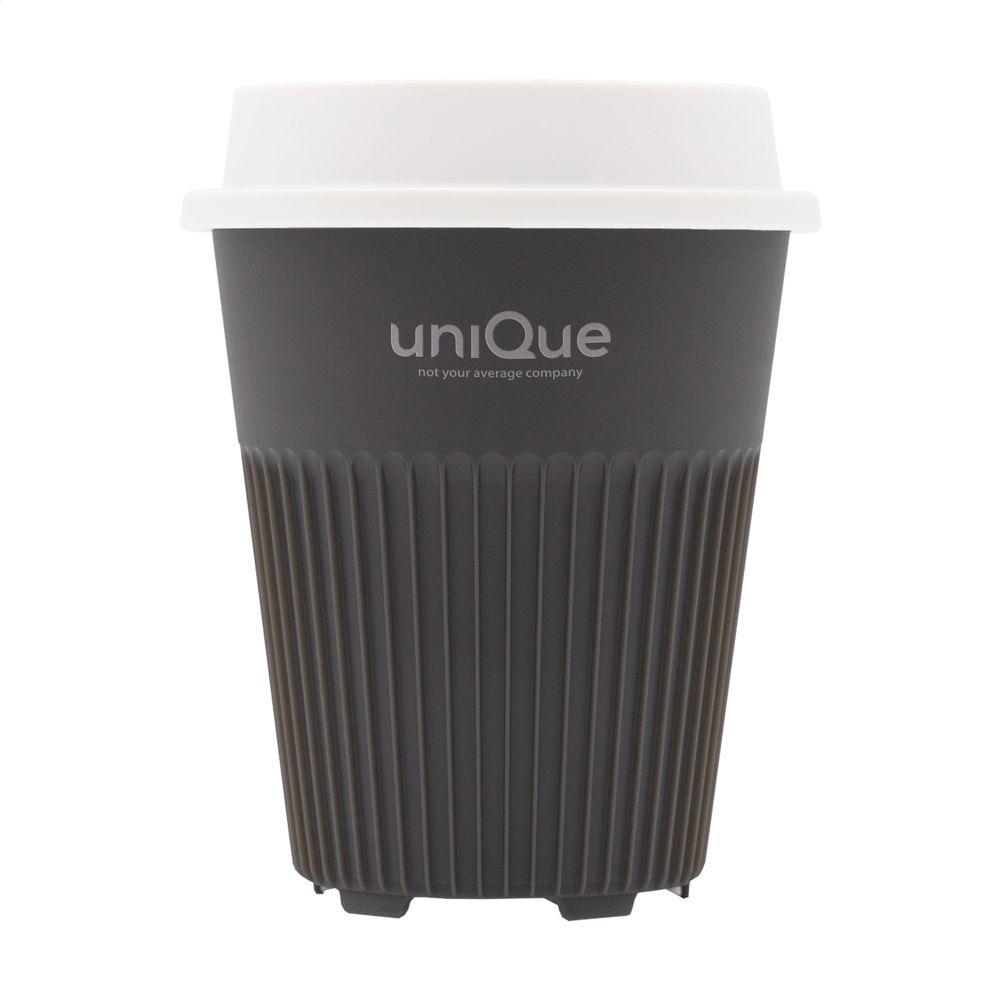 Herbruikbare koffie-to-go beker met deksel van het merk Circular&Co. Gemaakt van 100% recyclebaar, stevig PP. Deze stapelbare beker oogt niet alleen aantrekkelijk, het design legt ook de focus op functionaliteit. De ribbels verspreiden de warmte van de drank en zorgen voor een comfortabele grip. Daarnaast heeft de beker een quick-dry onderzijde. Het deksel met drinkopening voorkomt morsen. Past in de standaard drinkhouder van auto's, dus perfect voor onderweg, maar ook als beker bij de koffiemachine. Hét perfecte alternatief voor de wegwerpkoffiebeker. Deze beker gaat meer dan 500 wasbeurten mee en is tot 6 keer recyclebaar. Na slechts 2 keer gebruiken is de CO2-uitstoot van de koffie-to-go beker gecompenseerd ten opzichte van een alternatief voor eenmalig gebruik. Dit betekent dat enorme hoeveelheden CO2 onze atmosfeer nooit bereiken. Door over te stappen op een herbruikbare beker komen er miljarden bekers minder bij het afval terecht. Vaatwasserbestendig, alleen voor het bovenrek van de vaatwasser. Inhoud 340 ml.