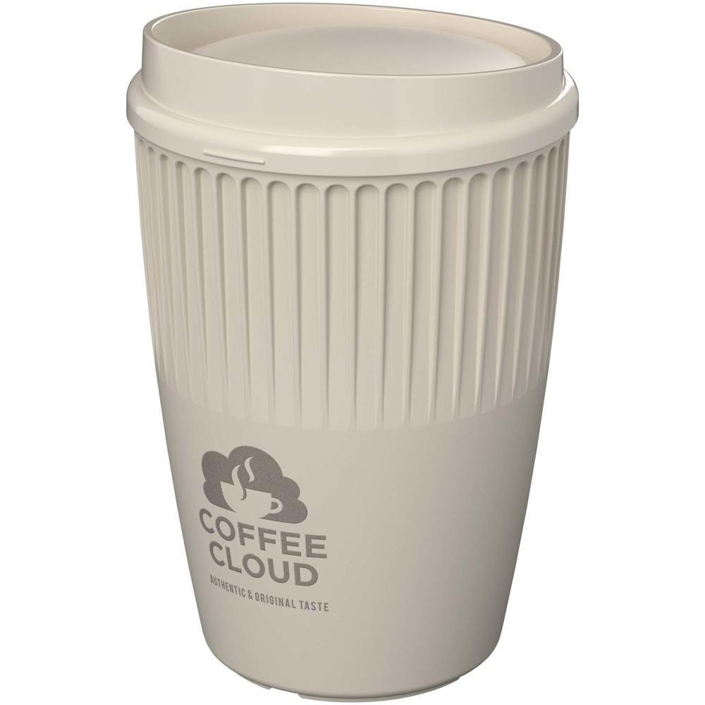 De enkelwandige beker heeft isolerende ribbels voor een veilige, comfortabele grip, zelfs bij warme dranken. Het elegante klepdeksel met subtiel reliëf maakt de drinkopening makkelijk te vinden op de tast. Volledig recyclebaar plastic voor de beker en het deksel zorgt voor duurzaamheid zonder in te boeten op stijl.