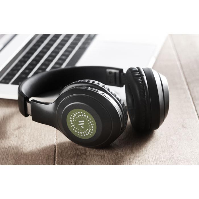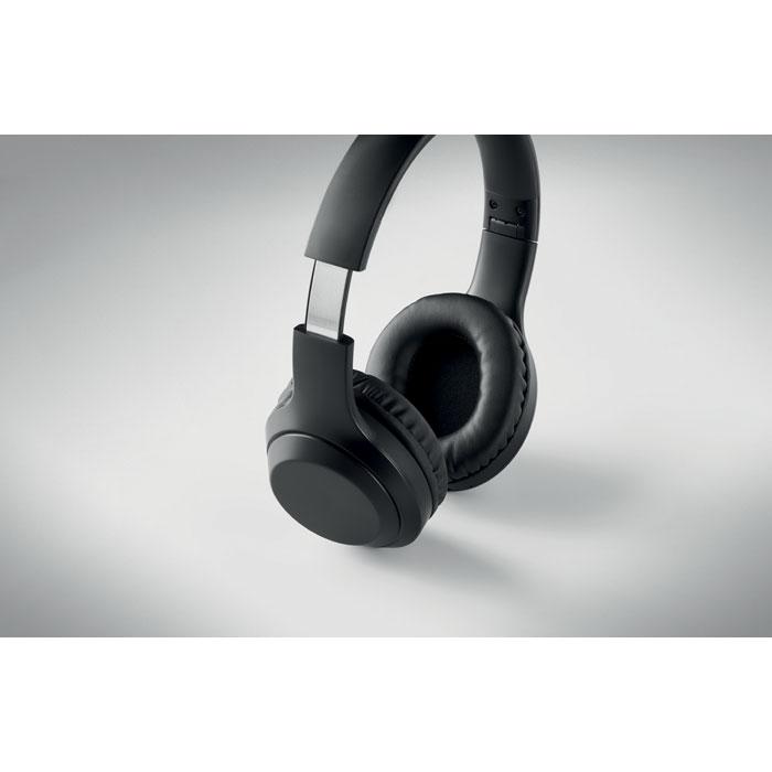 5.0 Opvouwbare ABS hoofdtelefoon in katoenen opbergpouch. Oplaadbare 200mAh Li-Pol batterij. Met handsfree en microfoon functie. Speeltijd ca. 4 uur. Inclusief Type-C oplaadkabel. Werkbereik: 10 m