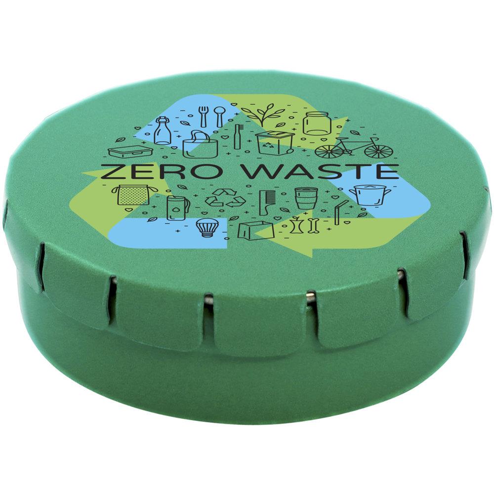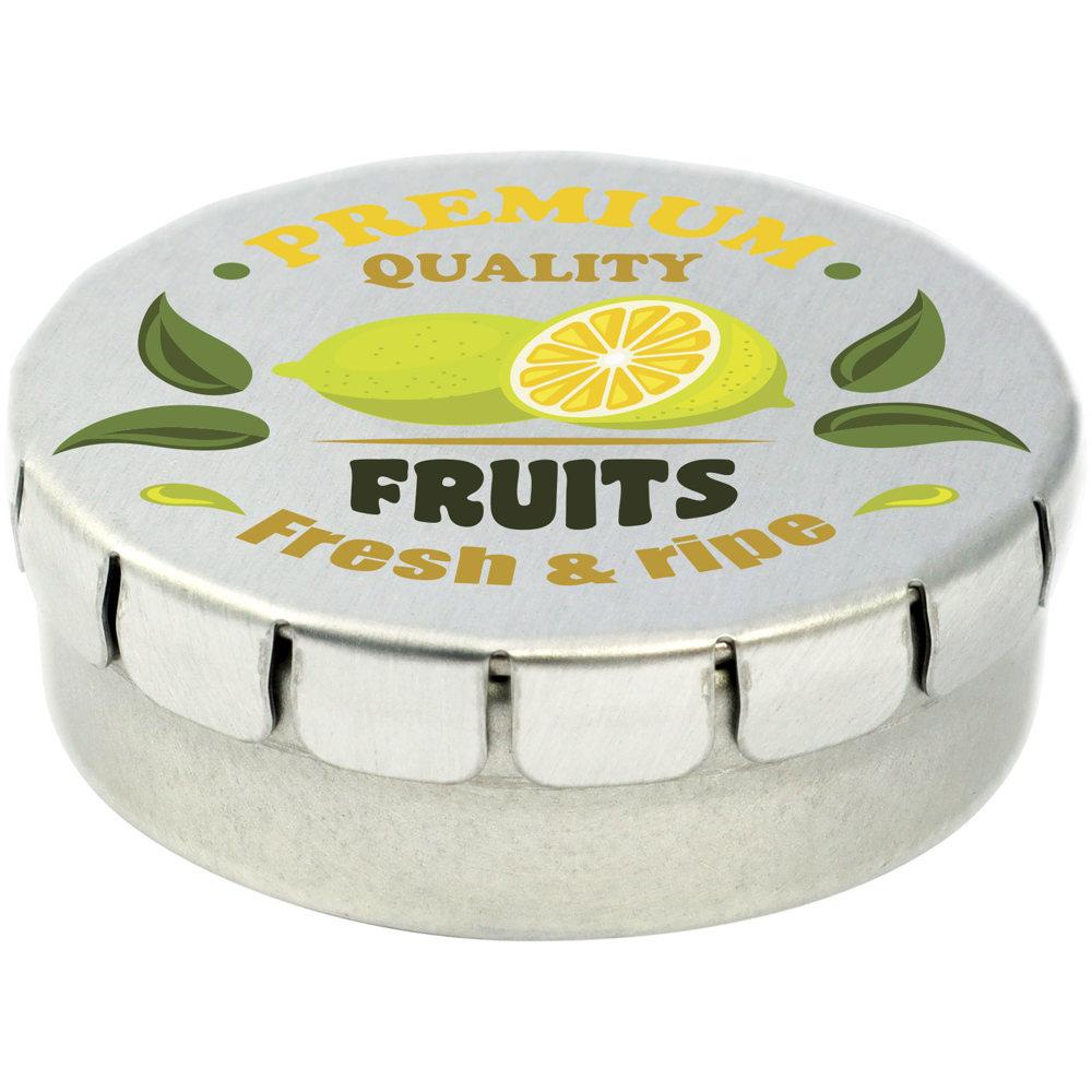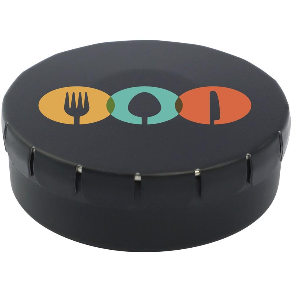 Versier het deksel met een full colour digitale print van jouw logo, zodat jouw merk opvalt bij elke ontvanger. Dit compacte blikje is superpraktisch om uit te delen aan klanten, prospects of relaties – het blijft lang vers en zorgt voor een blijvende indruk.