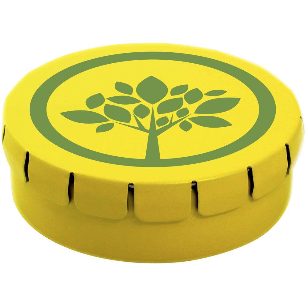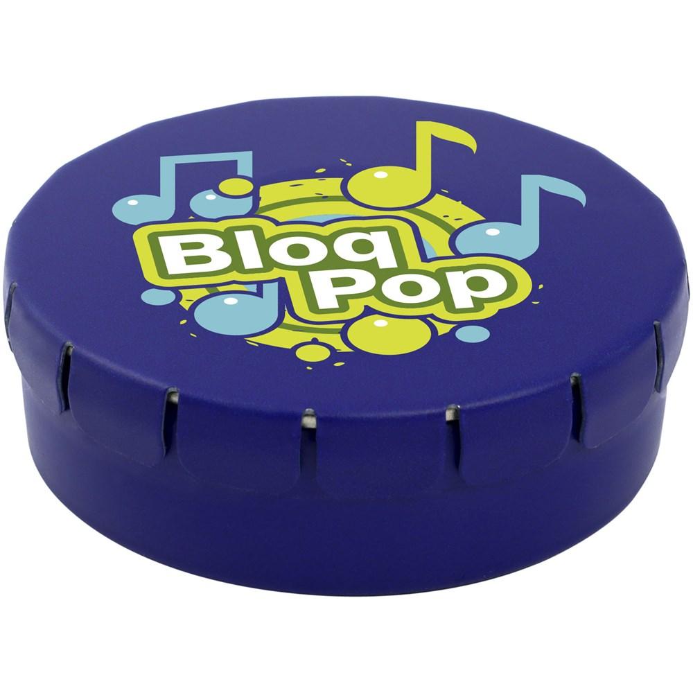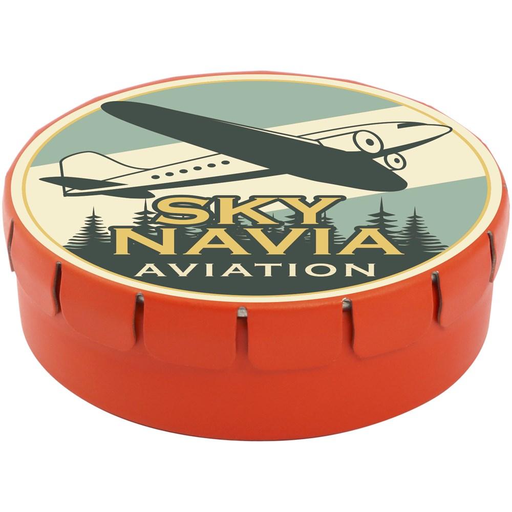 Verwen je klanten met deze compacte chocolade in een blikje van 45 mm diameter. Dankzij de gemakkelijke drukopening open je het moeiteloos, perfect voor op events of als relatiegeschenk. Kies uit diverse vullingen zoals pepermunt, extra sterke pepermunt, suikervrije pepermunt, fruitsmaak, hartvormige aardbeiensnoepjes, kaneel-, citroen- en pepermuntvarianten, of pure chocolade.
