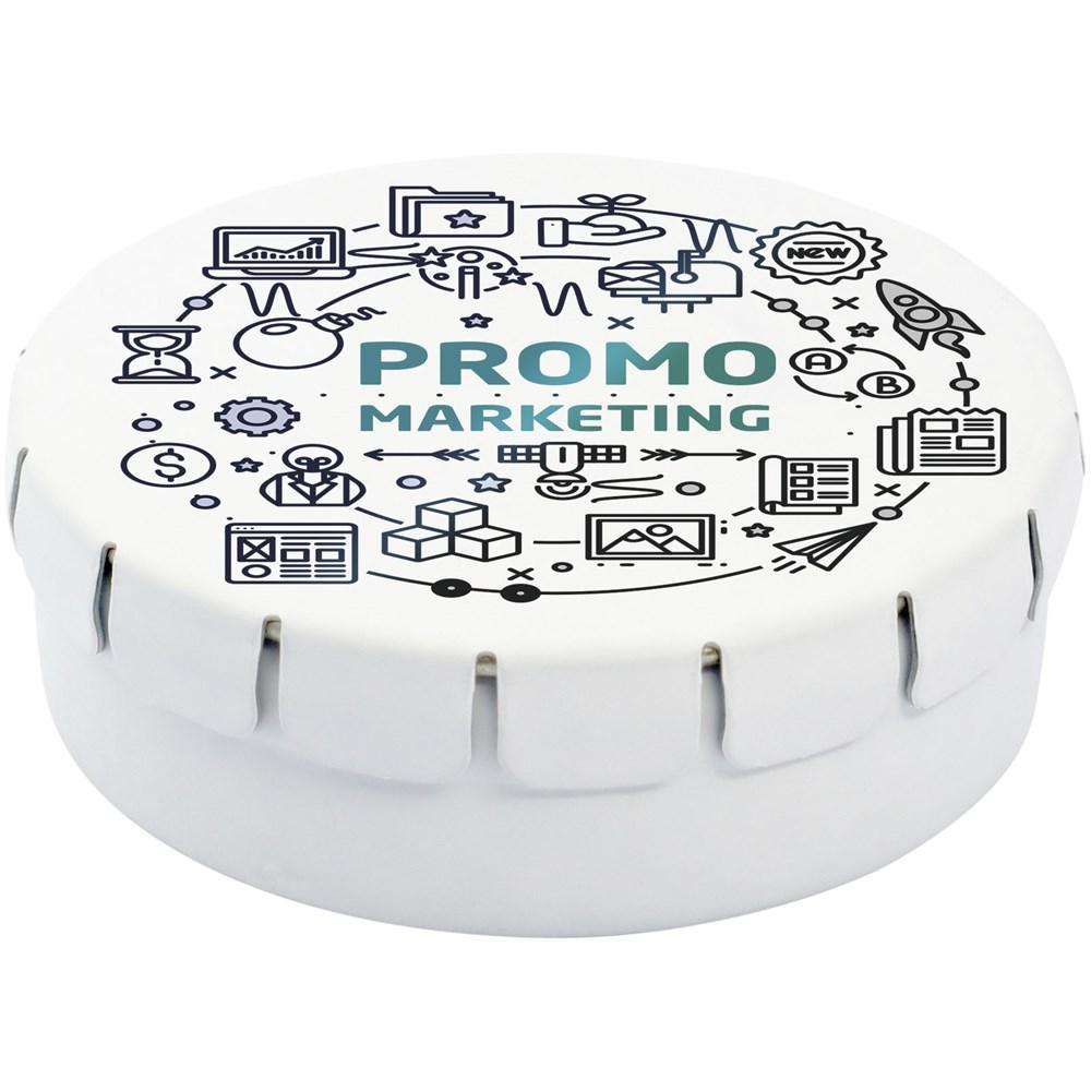 Deze snoepjes van 45 mm diameter zijn ideaal voor marketingprofessionals en eventorganisatoren: ze zijn makkelijk mee te nemen, bieden direct plezier met frisse smaken en zorgen voor langdurige zichtbaarheid van jouw merk, want het stevige blikje blijft na het leeg eten als reclamedrager. Personaliseer ze in grote aantallen om indruk te maken op jouw klanten en relaties.