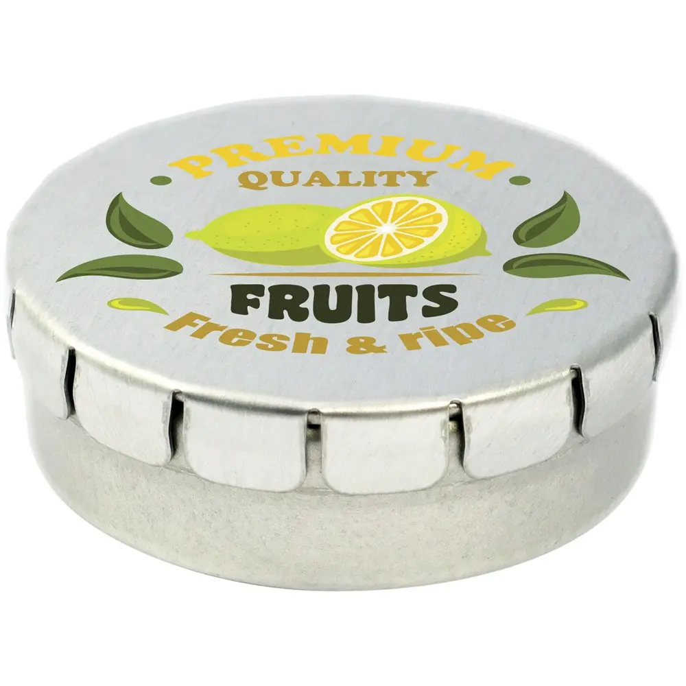 Ontdek onze suikervrije pepermunt in een handig blikje met drukopening. Dit compacte product, met afmetingen van 1,5 x ø 4,5 cm en gemaakt van tin, biedt u een praktische oplossing voor uw marketingstrategie. U kunt het vullen met diverse smaken zoals pepermunt, extra sterke pepermunt, fruitsmaak, hartvormige aardbeiensnoepjes, kaneel, citroen, pepermuntsmaak of chocolade.